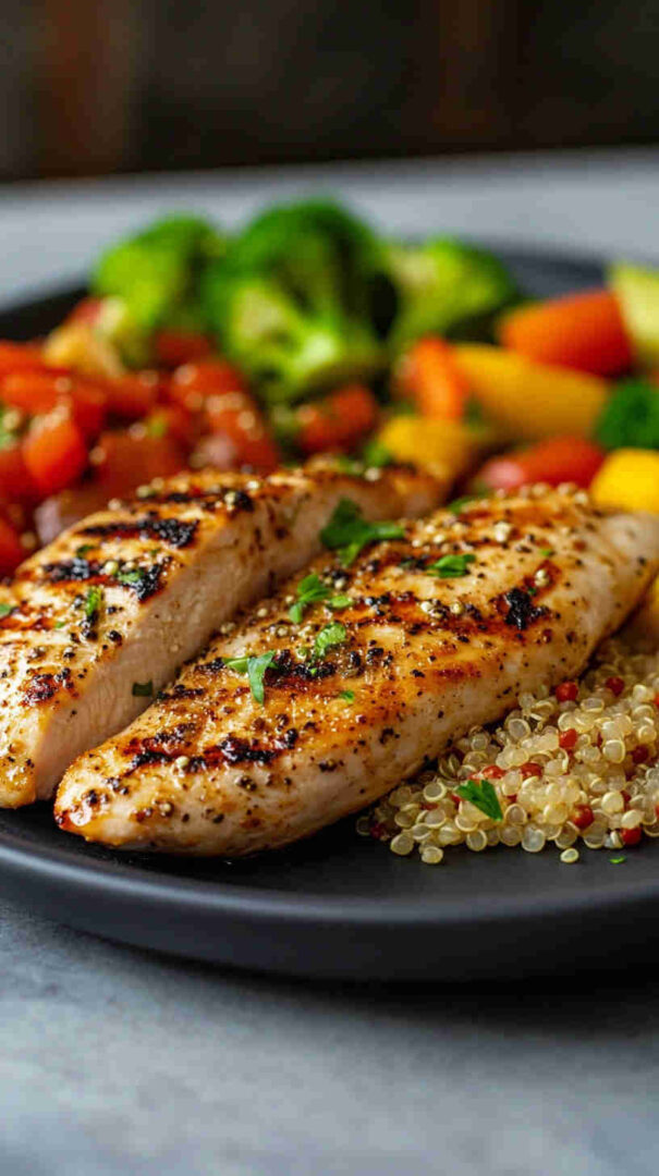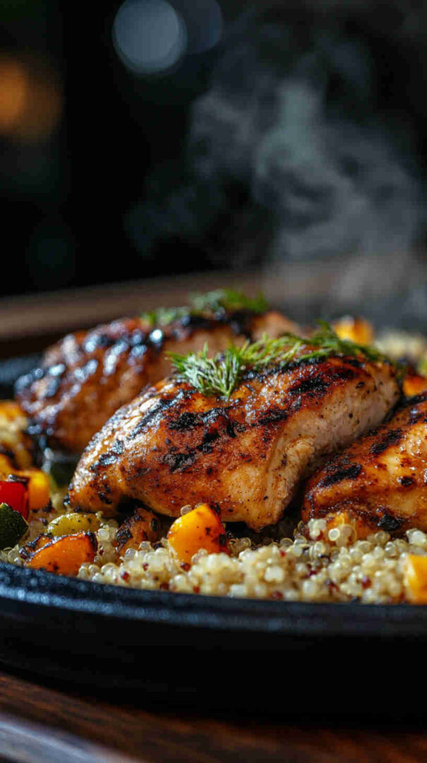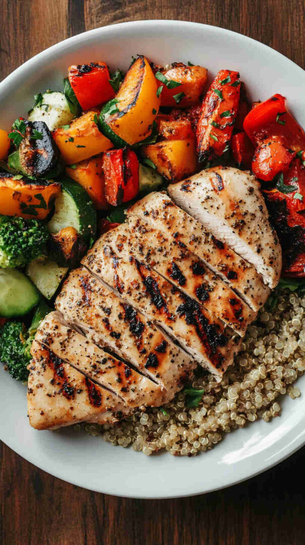 Juicy herb-grilled chicken with fluffy quinoa and roasted veggies—high-protein, balanced, and bursting with fresh flavor.