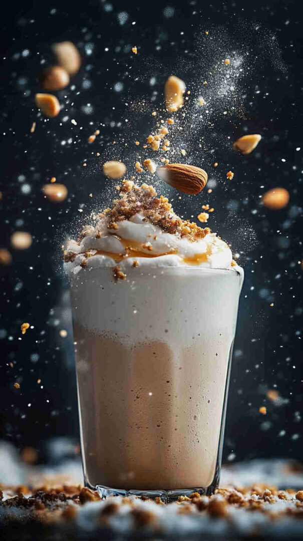 - If you like it extra cold/thick, toss in a handful of ice cubes or a few frozen almond milk cubes.