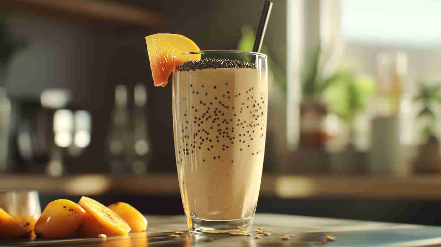 Chia seeds thicken the smoothie, add omega-3s, fiber, and a slight gel-like body. Unsweetened almond milk keeps it light and dairy-free (any plant milk works—oat milk makes it even creamier).