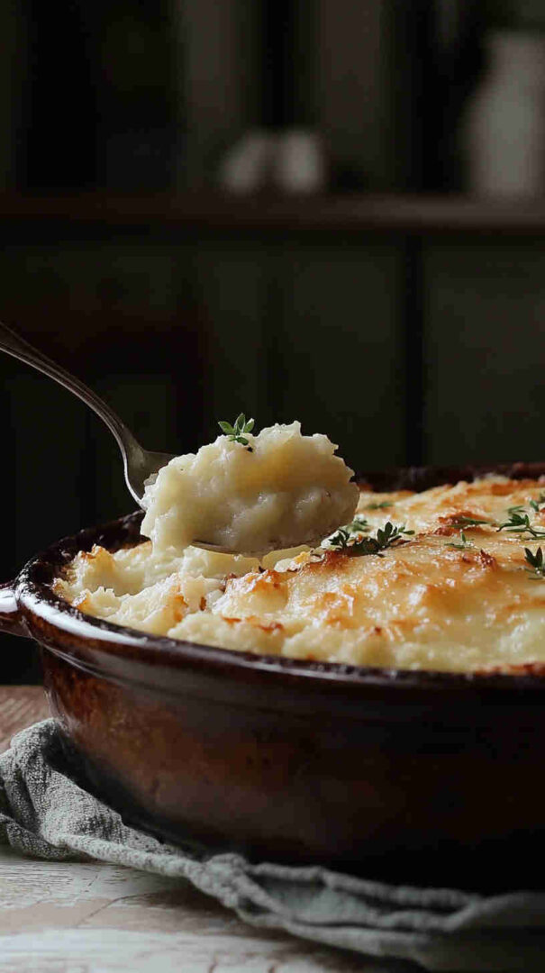 Add a splash of balsamic or red wine vinegar at the end of the filling for brightness. Pipe or swirl the mash on top with a spoon or piping bag for that classic cottage-pie look. Bake uncovered last 15–20 minutes for golden, slightly crisp edges.