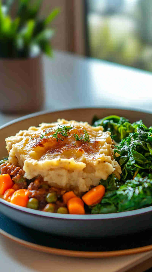 - Bake uncovered 20–30 min until mash is golden and filling bubbles at edges. Let rest 10–15 min before serving—this sets everything perfectly. Scoop generous portions and enjoy this cozy, protein-loaded vegan hug on a plate!