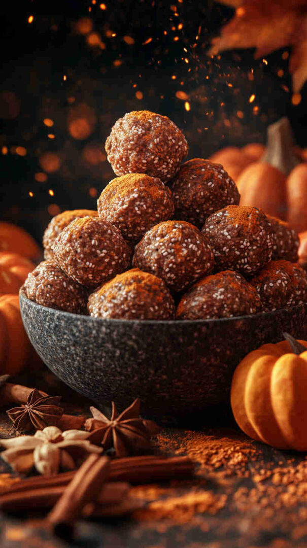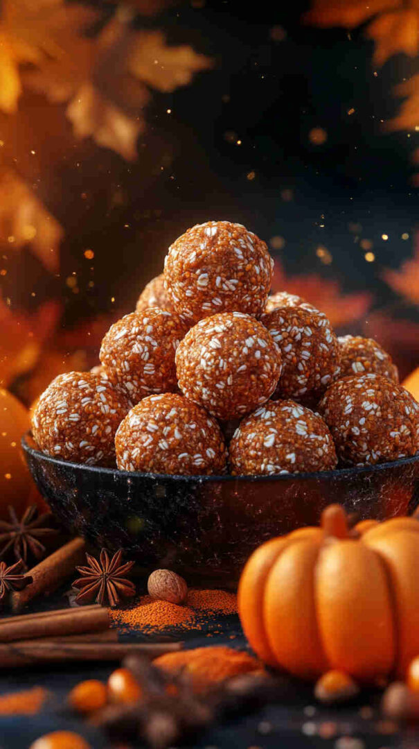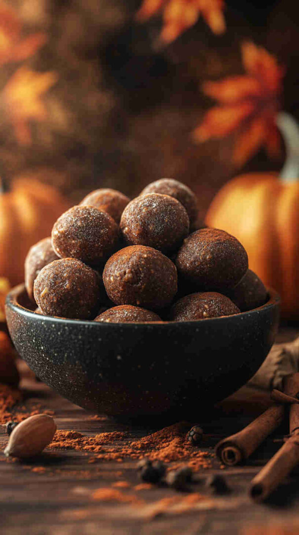 No-bake pumpkin spice energy bites: chewy, spiced, healthy fall treats ready in minutes.