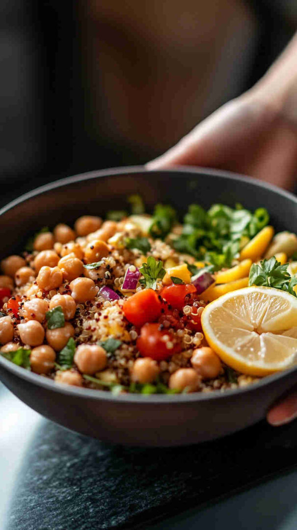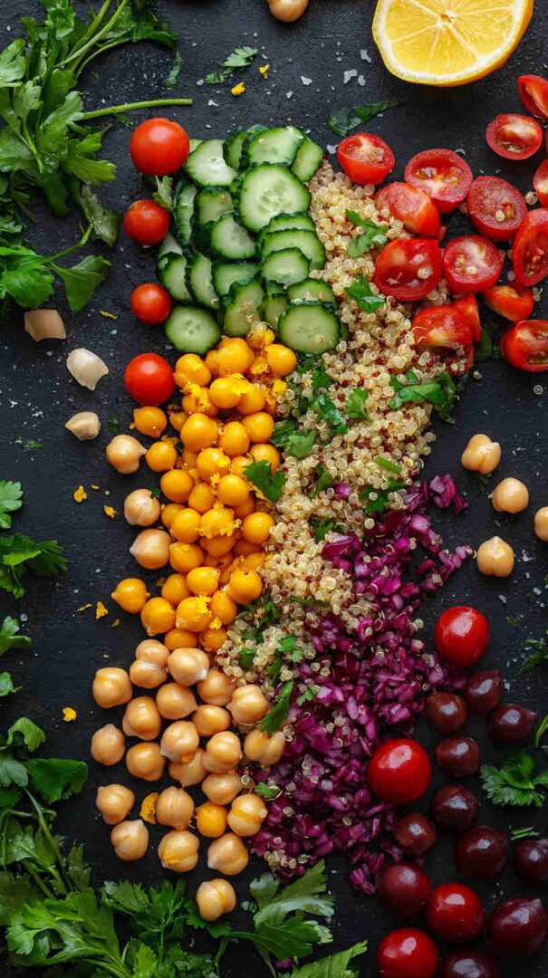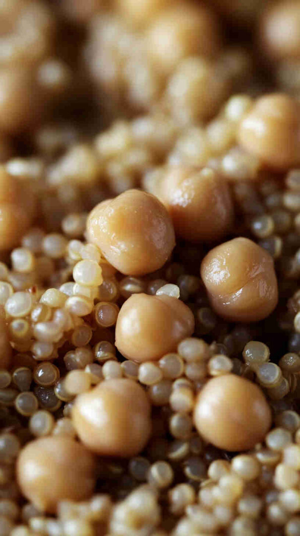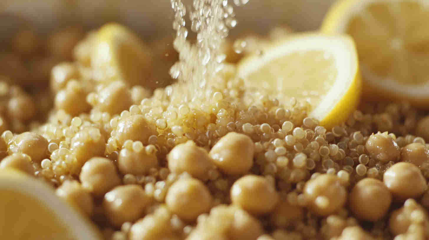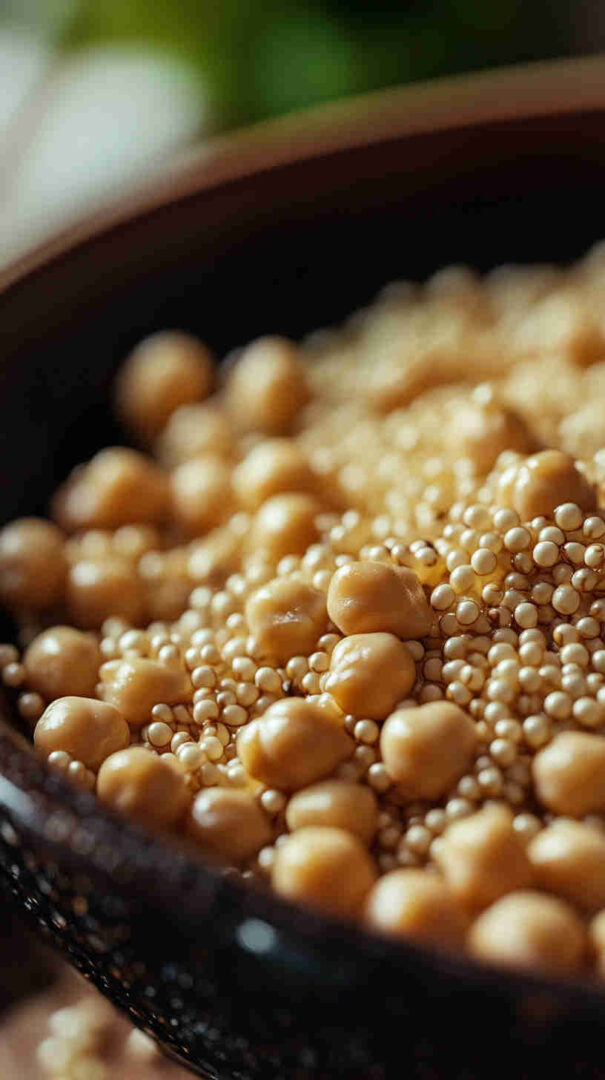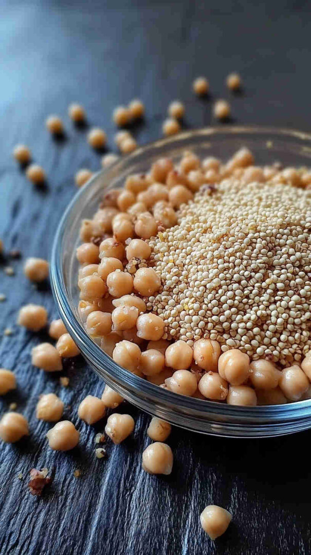 Quinoa: White, red, or tri-color—rinse well; provides nutty flavor, fluffy texture, and complete protein. Chickpeas: Canned (rinsed and drained) for convenience or home-cooked for superior texture; hearty, creamy base.