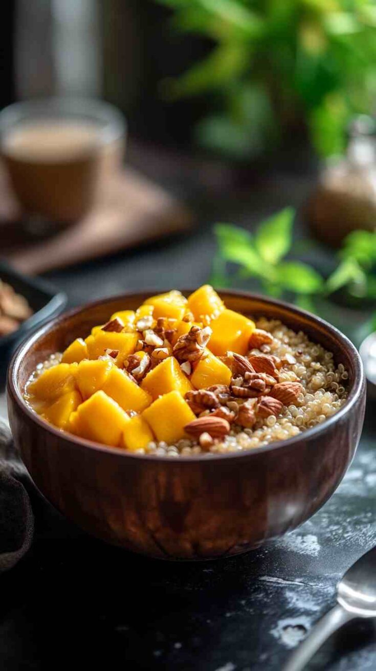 This quinoa breakfast bowl with fresh fruit is a wholesome, energizing start to your day, blending the nutty goodness of quinoa with the natural sweetness of fresh fruits like berries and bananas. Packed with protein, fiber, and vitamins, it’s a versatile, gluten-free option that’s quick to prepare and perfect for busy mornings or meal prep. Customizable with nuts, seeds, or a drizzle of honey, it offers a satisfying, healthy alternative to traditional breakfasts, keeping you full and focused with its vibrant flavors and nutrient-rich ingredients.
