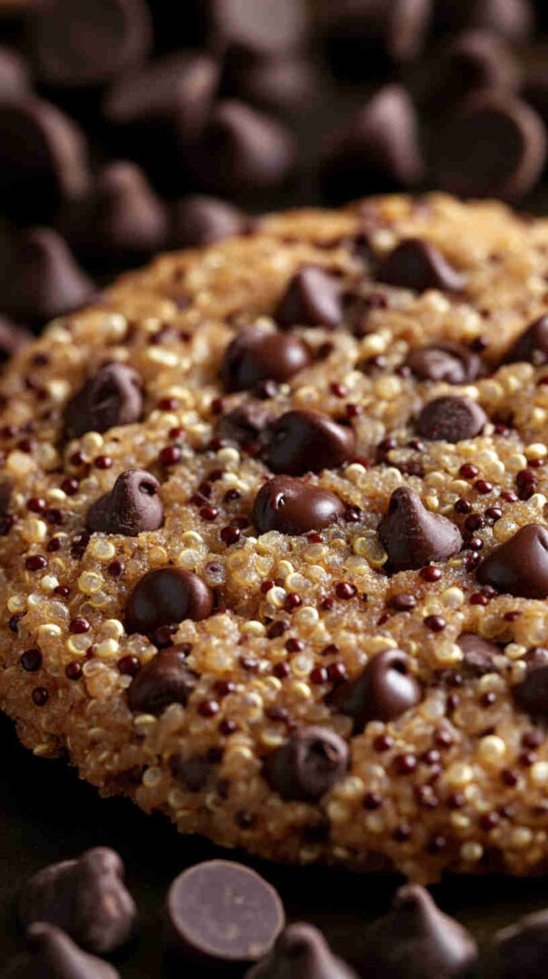 Chewy, protein-packed quinoa chocolate chip cookies—gluten-free, healthier indulgence with rich chocolate flavor.