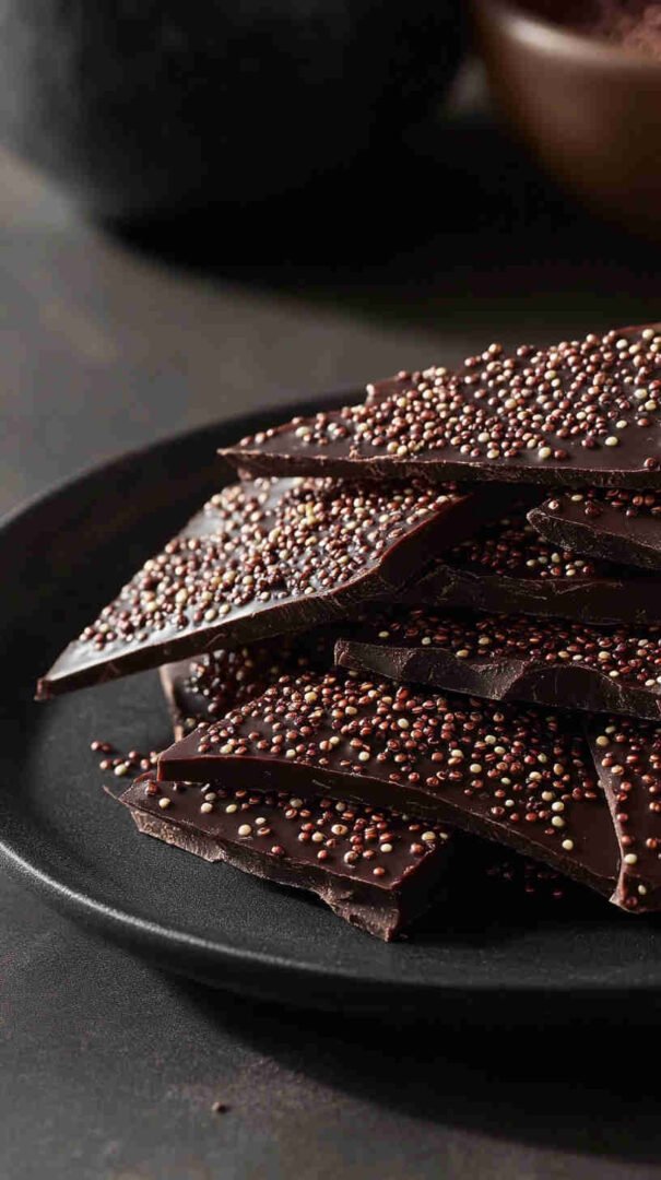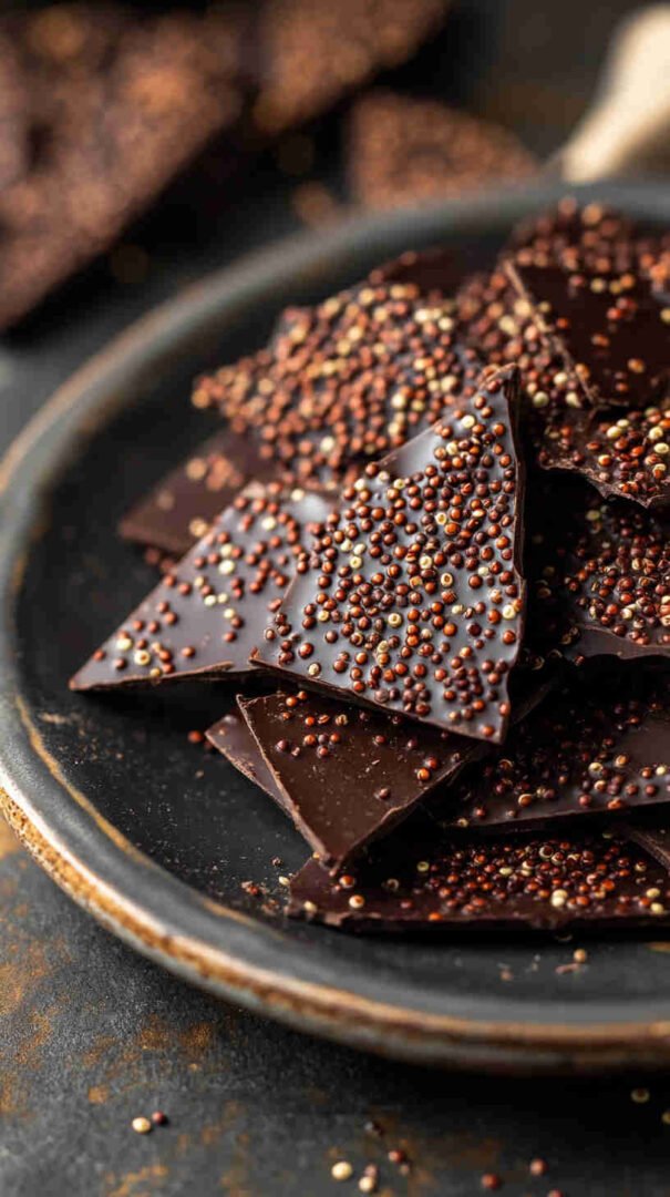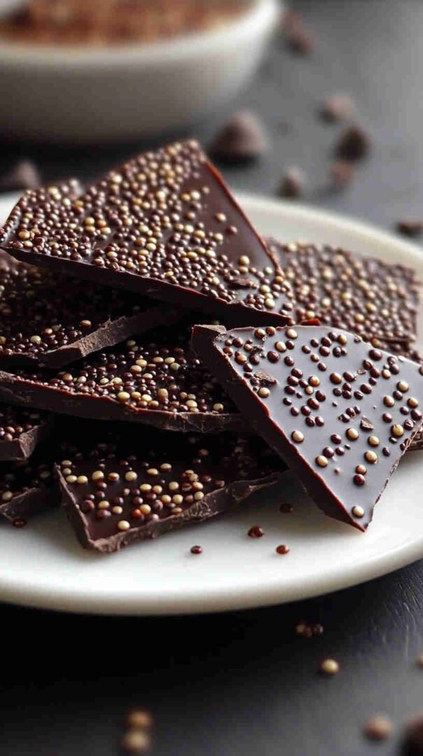 This irresistible Quinoa Dark Chocolate Bark combines toasted quinoa with rich dark chocolate for a satisfying crunch in every bite. Naturally gluten-free, vegan-friendly, and loaded with protein, fiber, and antioxidants, it’s a guilt-free treat that satisfies sweet cravings while delivering wholesome nutrition — perfect for snacking or gifting.