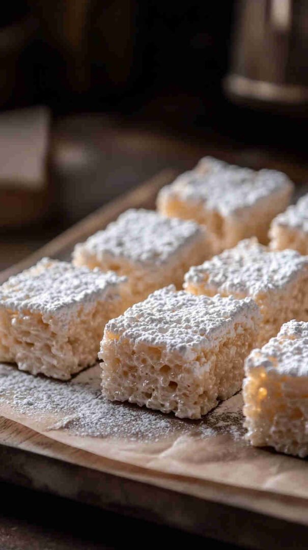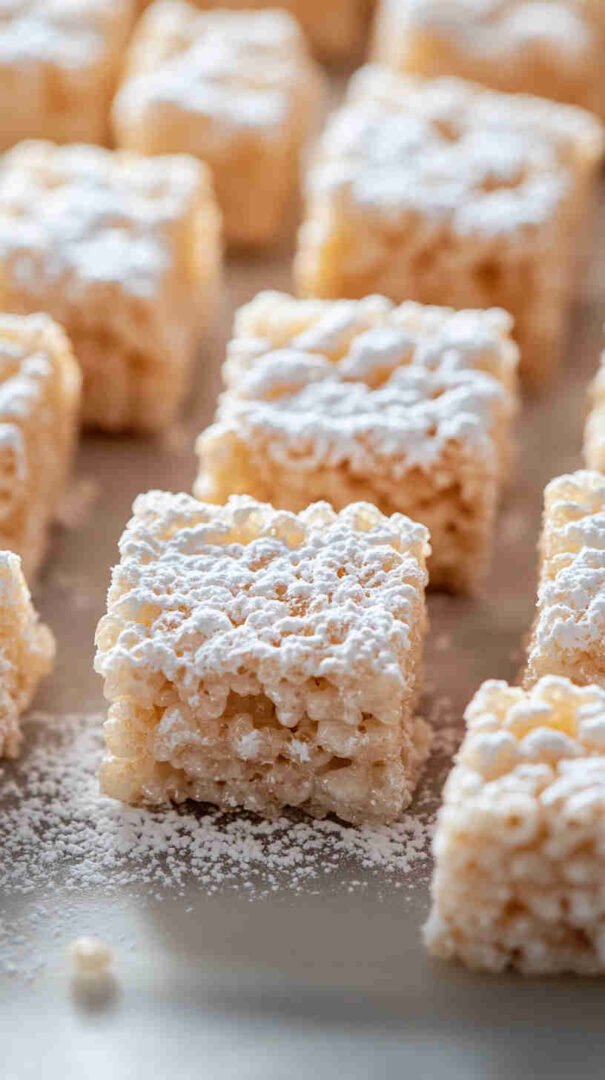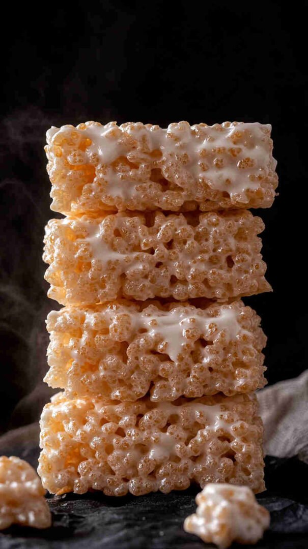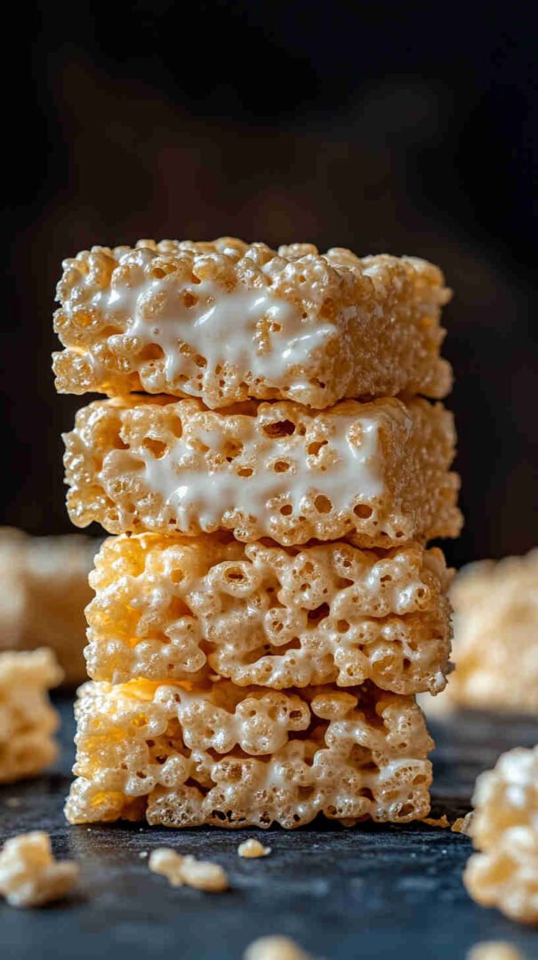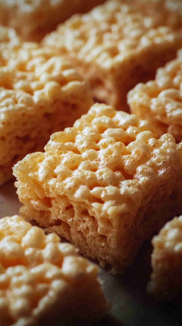 These treats soften at room temperature in warm weather, so keep them chilled if your kitchen runs hot. They’re naturally gluten-free if you use certified gluten-free rice cereal. For extra indulgence, add a chocolate drizzle after slicing!