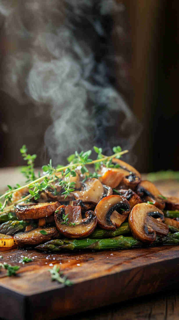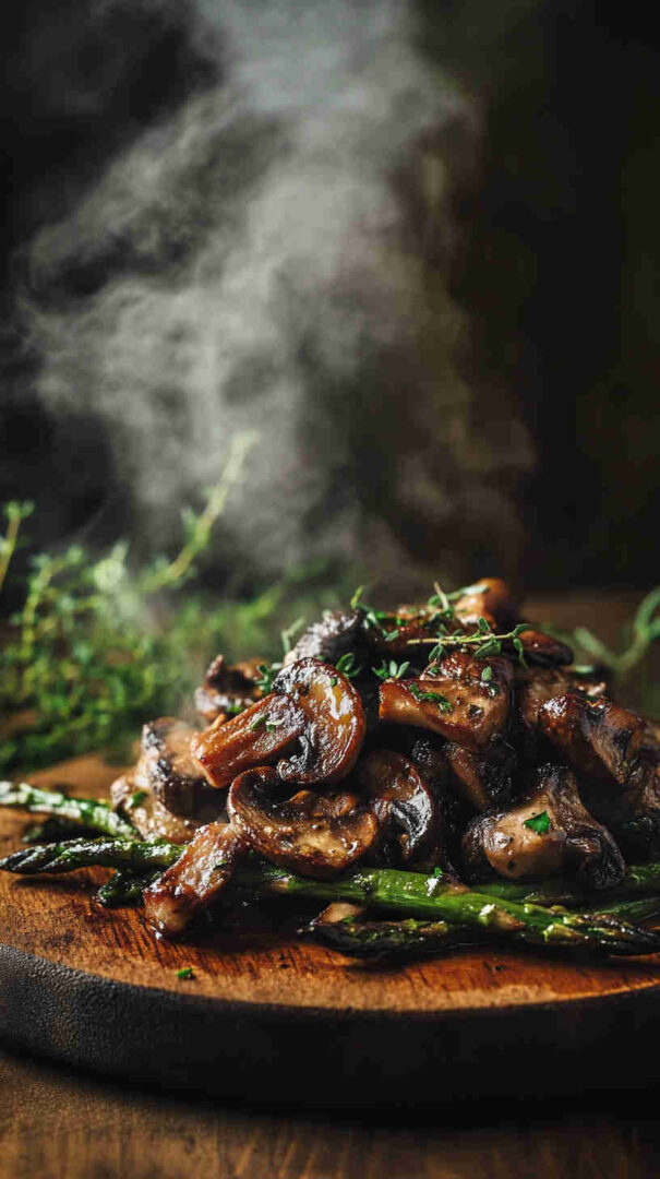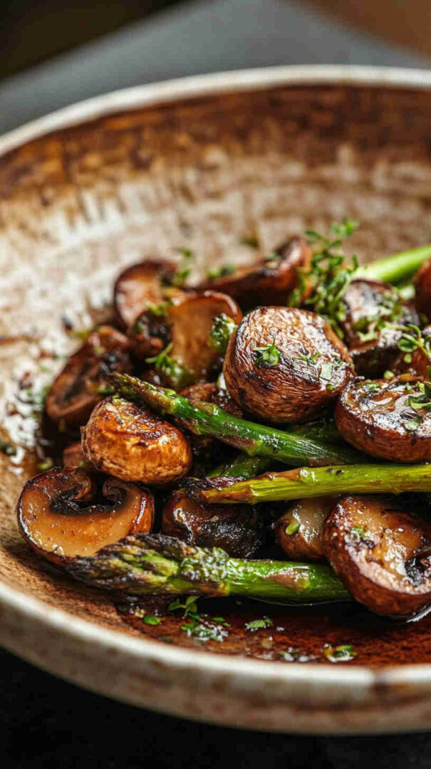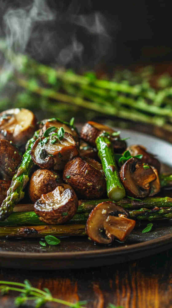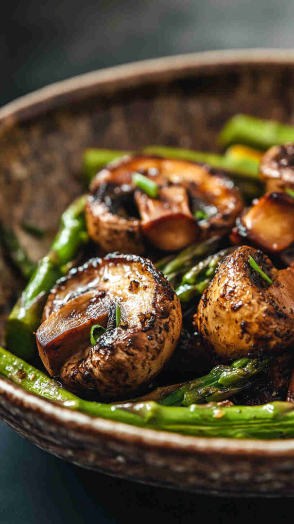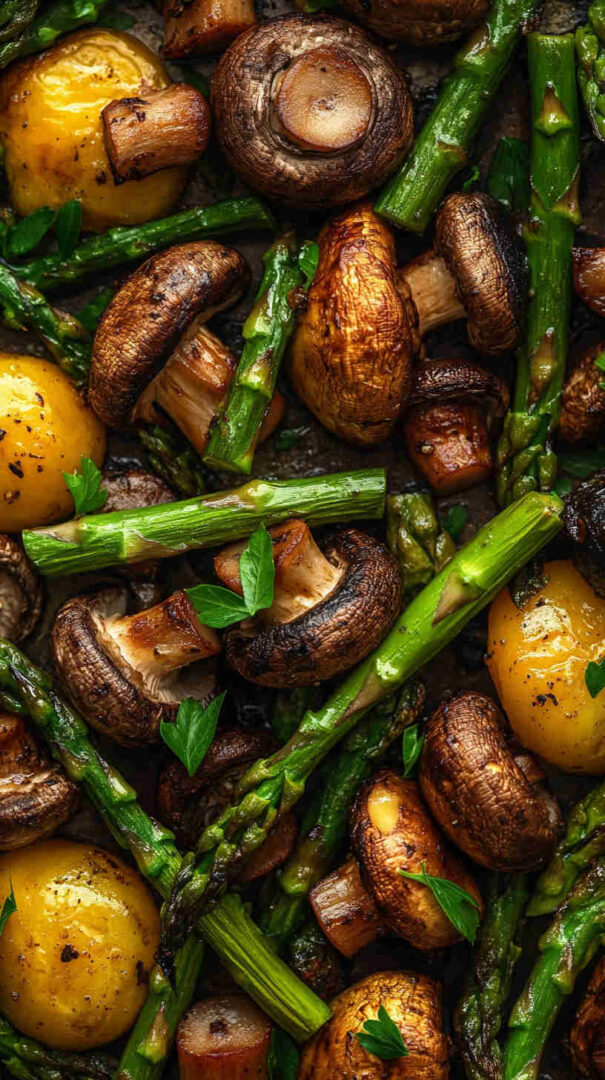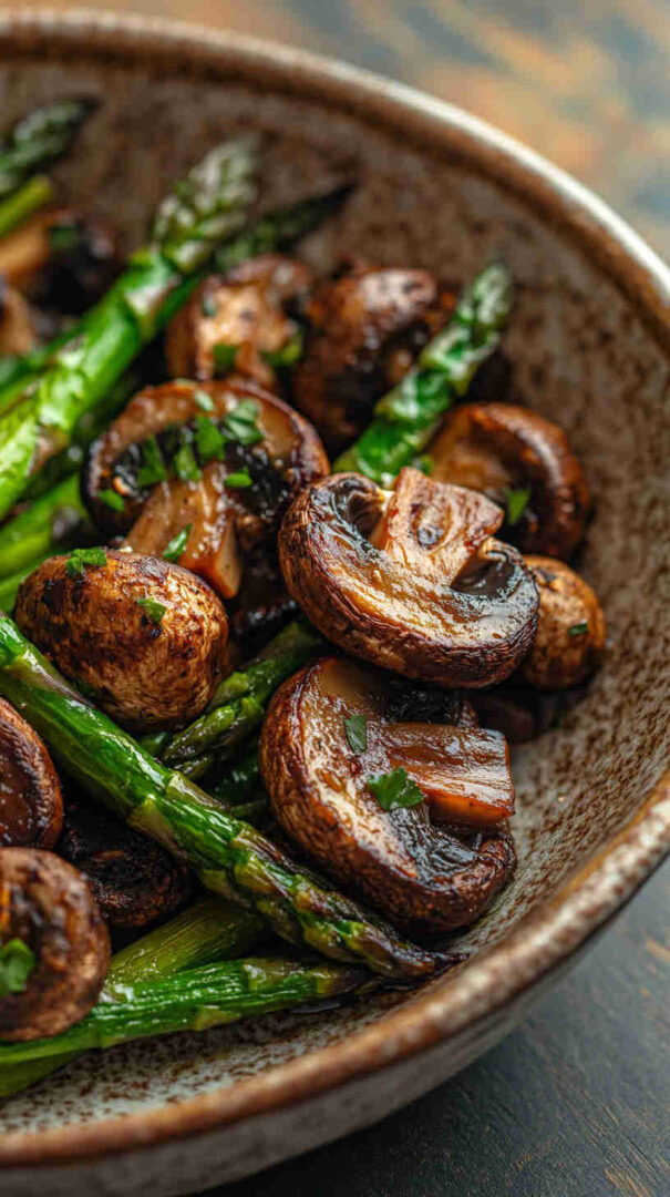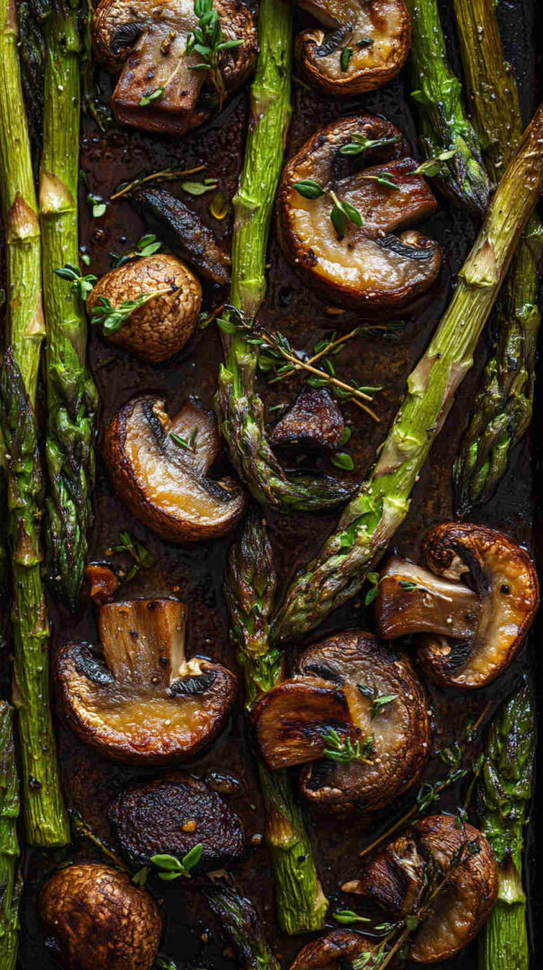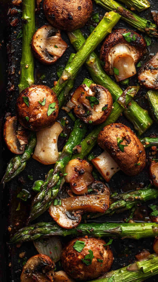 Tender-crisp asparagus spears and earthy mushrooms tossed in garlic-infused olive oil, then roasted until beautifully caramelized with golden edges. This simple sheet-pan side dish bursts with fresh, savory flavor and comes together in minutes—perfect for busy weeknights or elegant dinner parties.
