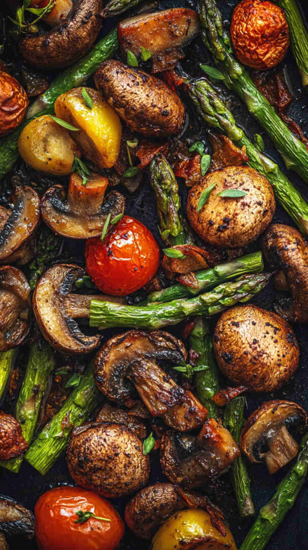 Preheat your oven fully for the best caramelization. Spread the vegetables in a single layer without overcrowding—use two pans if needed so they roast instead of steaming. Pat the mushrooms dry after cleaning to avoid excess moisture.