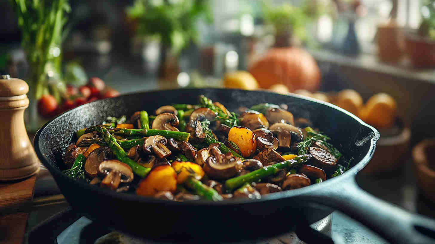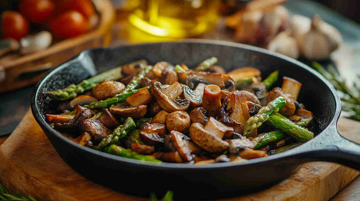 Easy garlic-roasted asparagus and mushrooms with golden edges—healthy, flavorful, and ready in under 30 minutes.