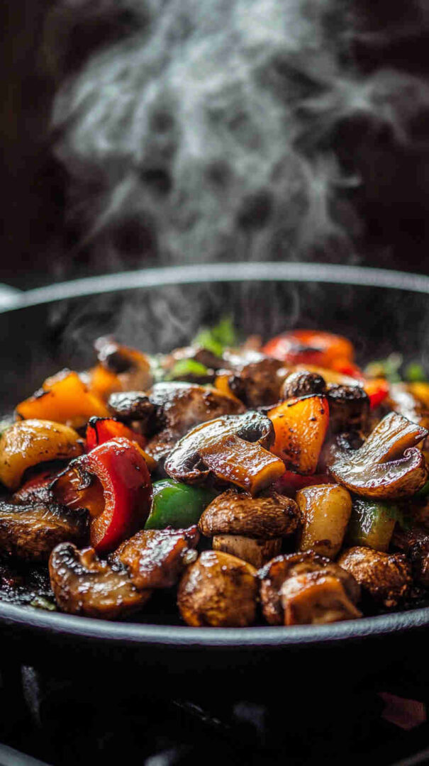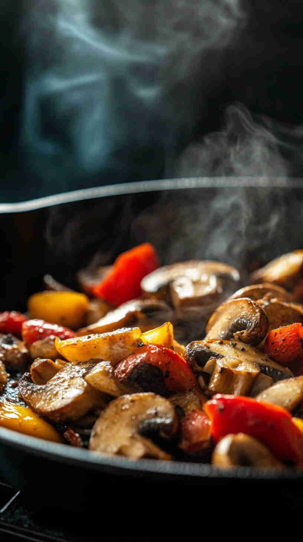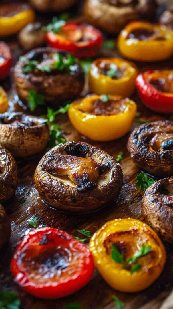 - Check for perfect doneness — The bell peppers should be tender with slightly charred edges, and the mushrooms nicely shrunken and golden. Pull them out and let them rest for a couple of minutes to settle the flavors.