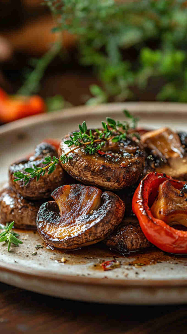 Tender mushrooms roasted to golden perfection with extra virgin olive oil, fragrant garlic, fresh Mediterranean herbs, bright lemon zest, and a touch of warmth from oregano and thyme. This simple yet elegant dish captures the sunny flavors of the Mediterranean coast—earthy, zesty, and irresistibly savory. Perfect as a side or light vegetarian main.