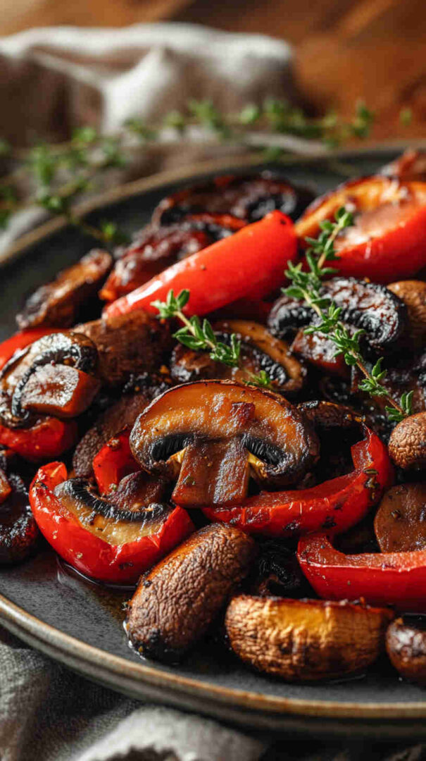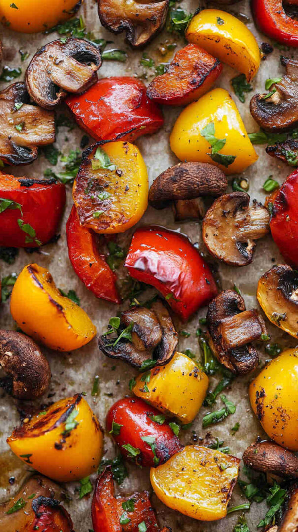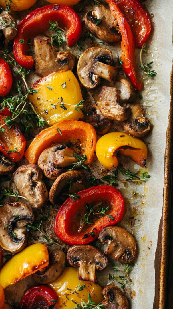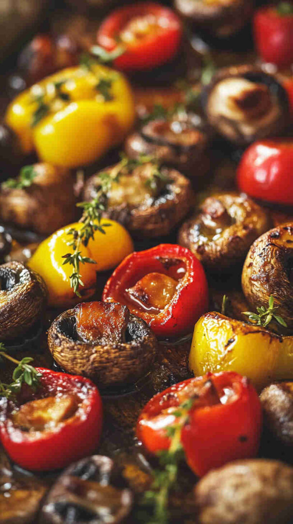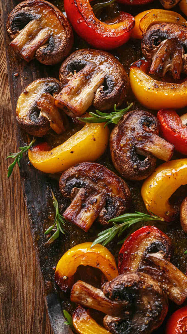 Colorful roasted mushrooms and bell peppers with garlic—sweet, savory, and ready fast for any meal.
