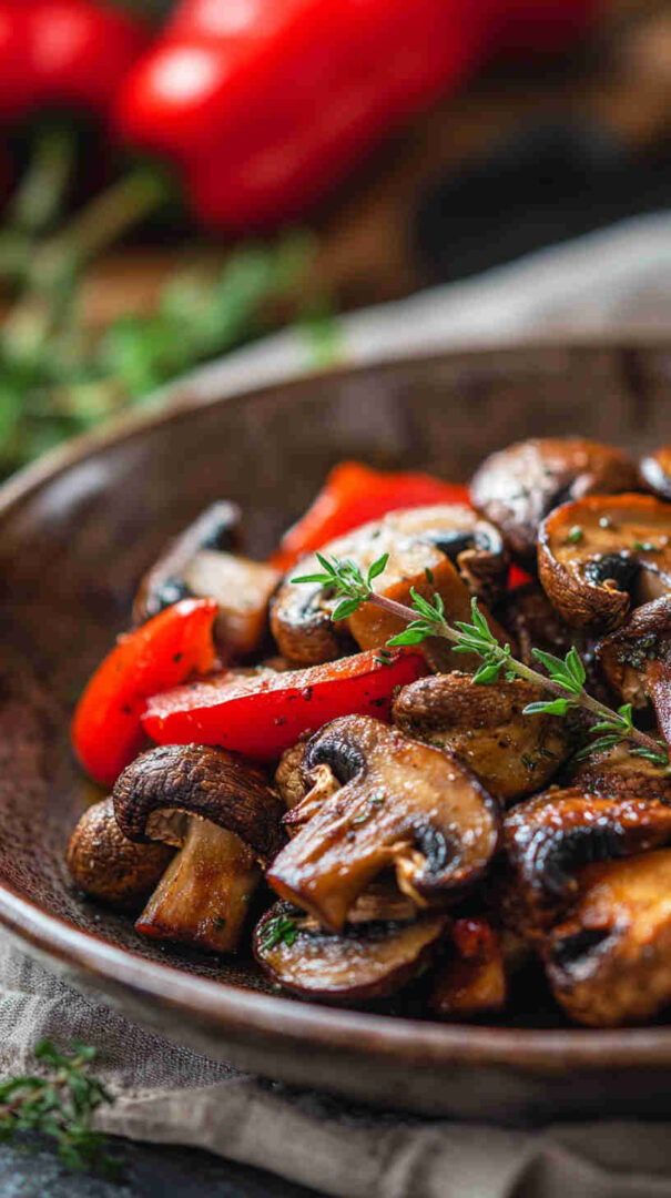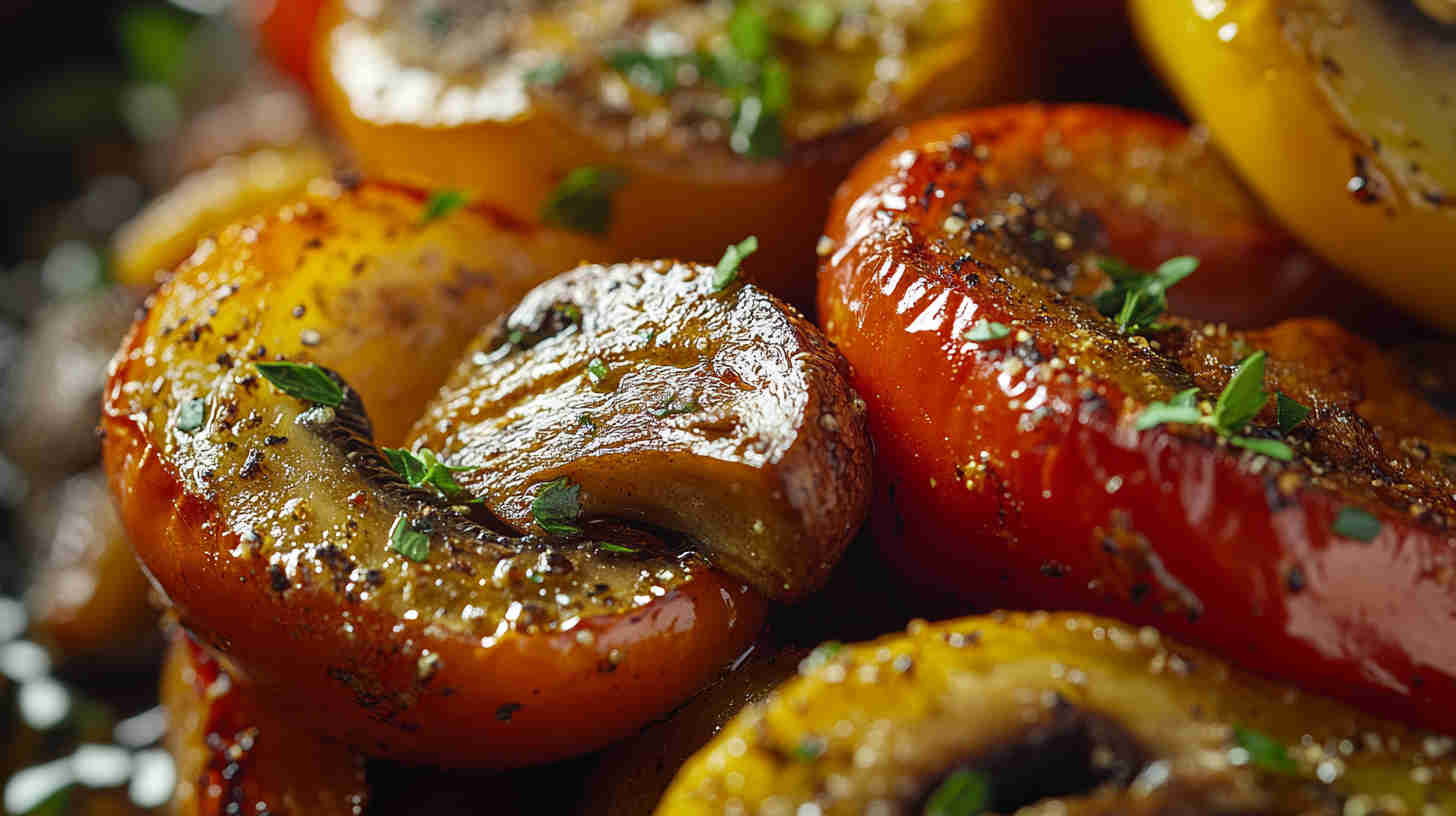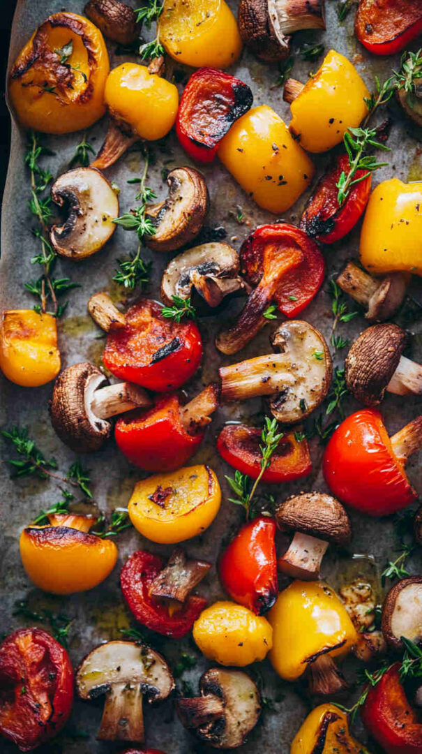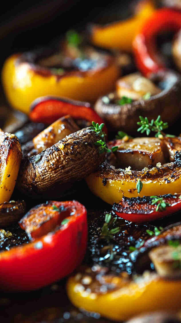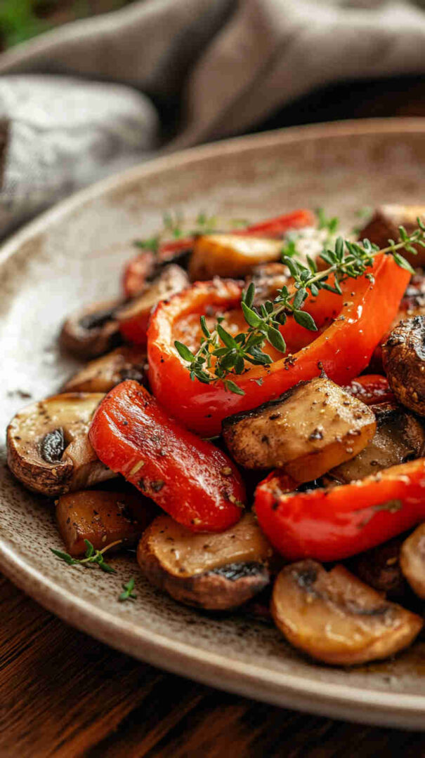 Colorful roasted mushrooms and bell peppers with garlic—sweet, savory, and ready fast for any meal.