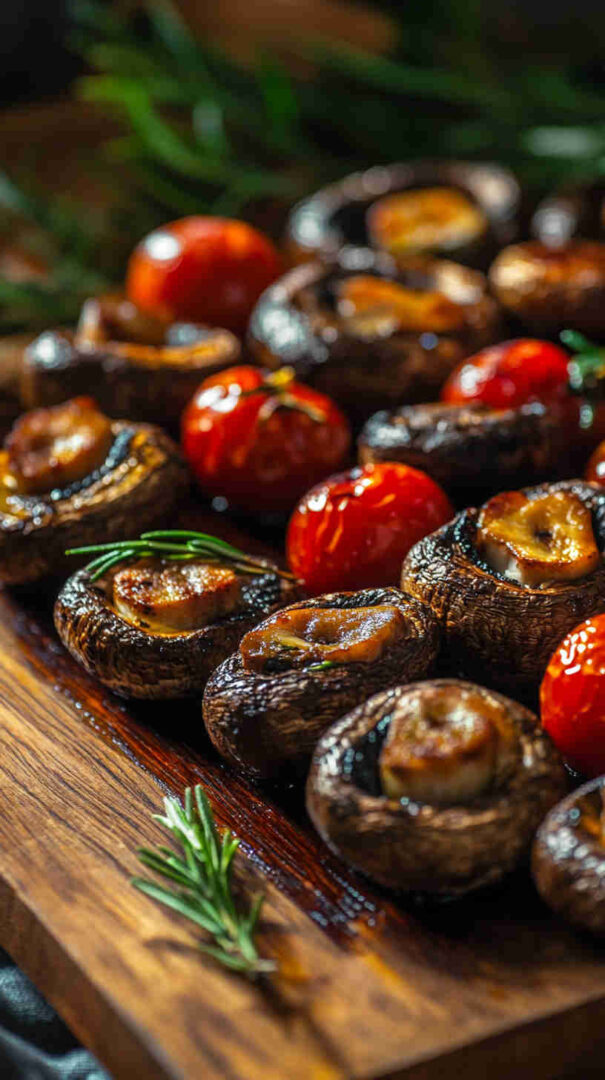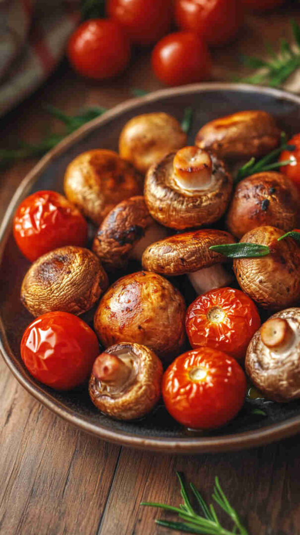- Serve with delight — Transfer the roasted mushrooms and cherry tomatoes to a serving platter. Drizzle with balsamic vinegar and scatter fresh basil leaves if desired, then serve warm and enjoy the juicy, savory explosion of flavor!
