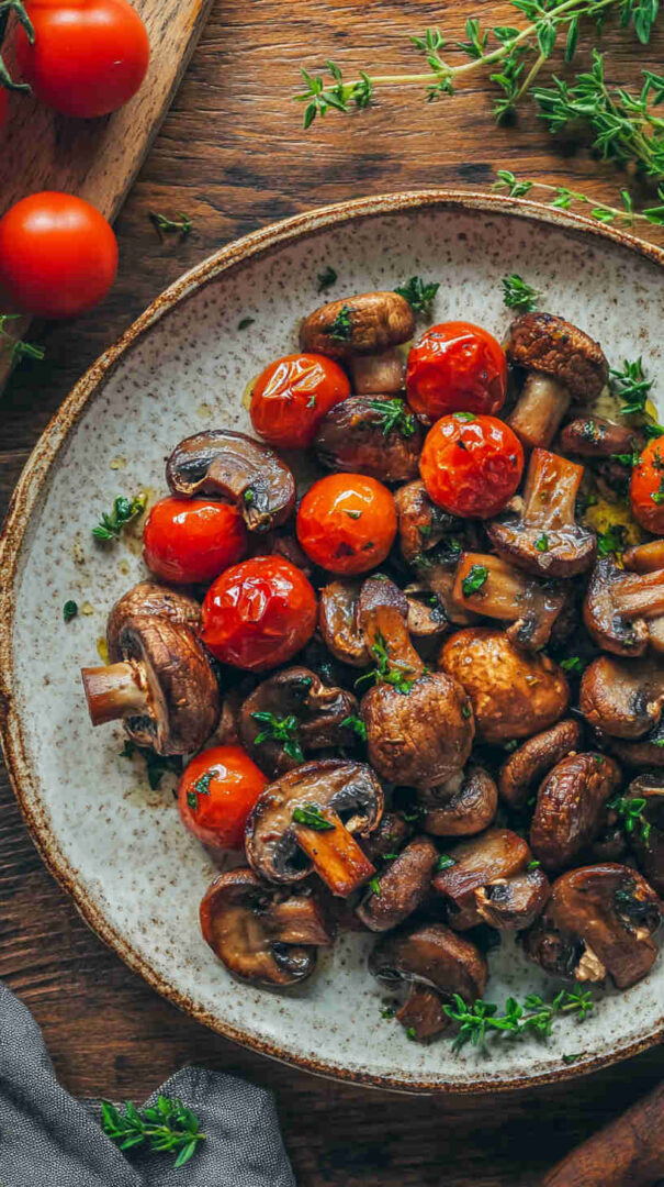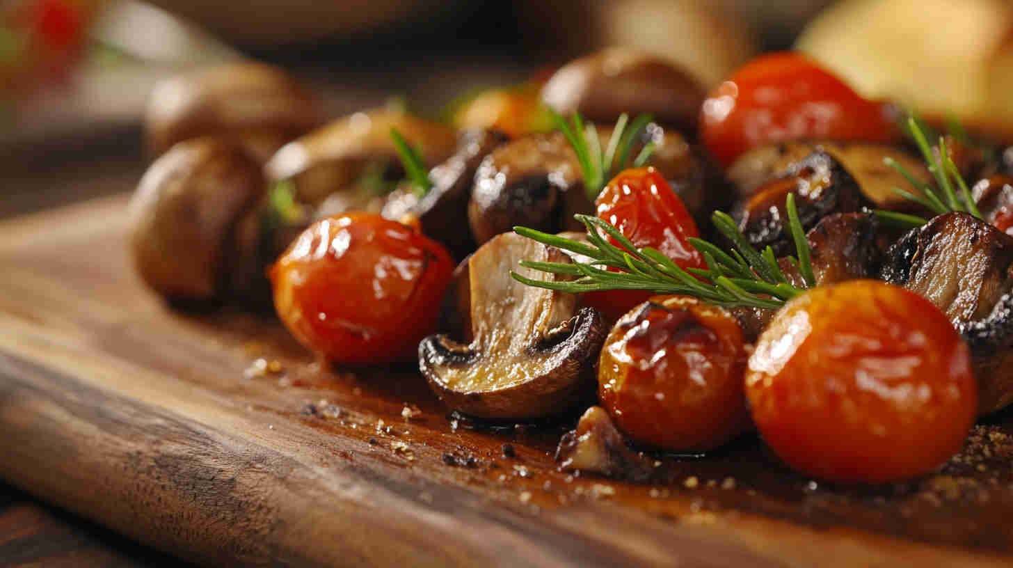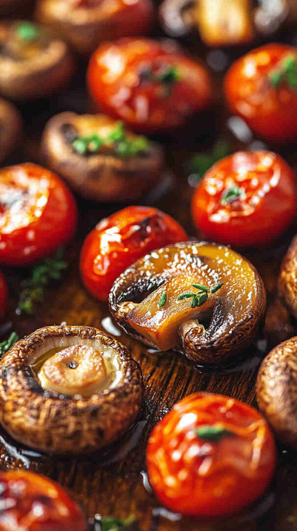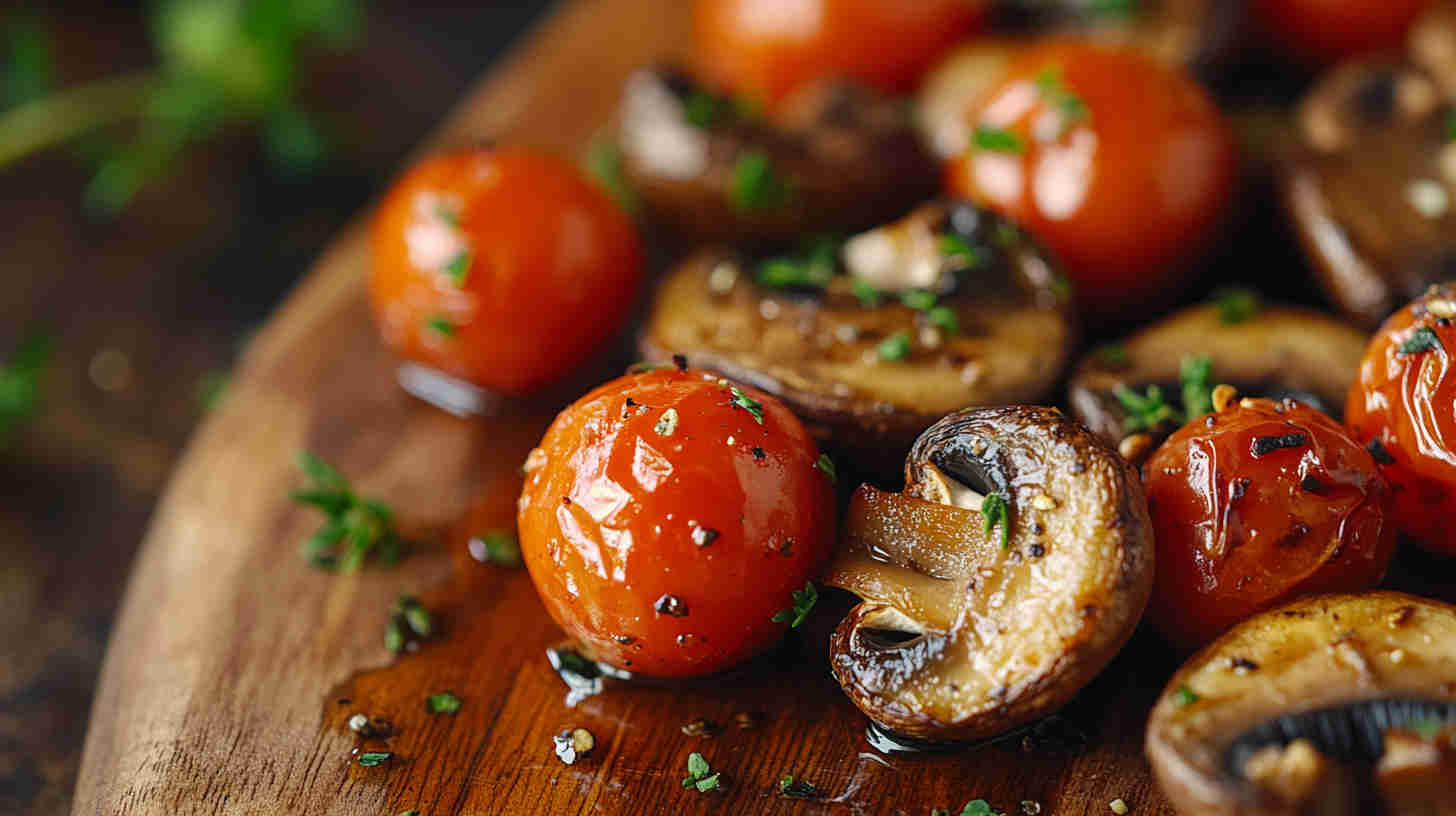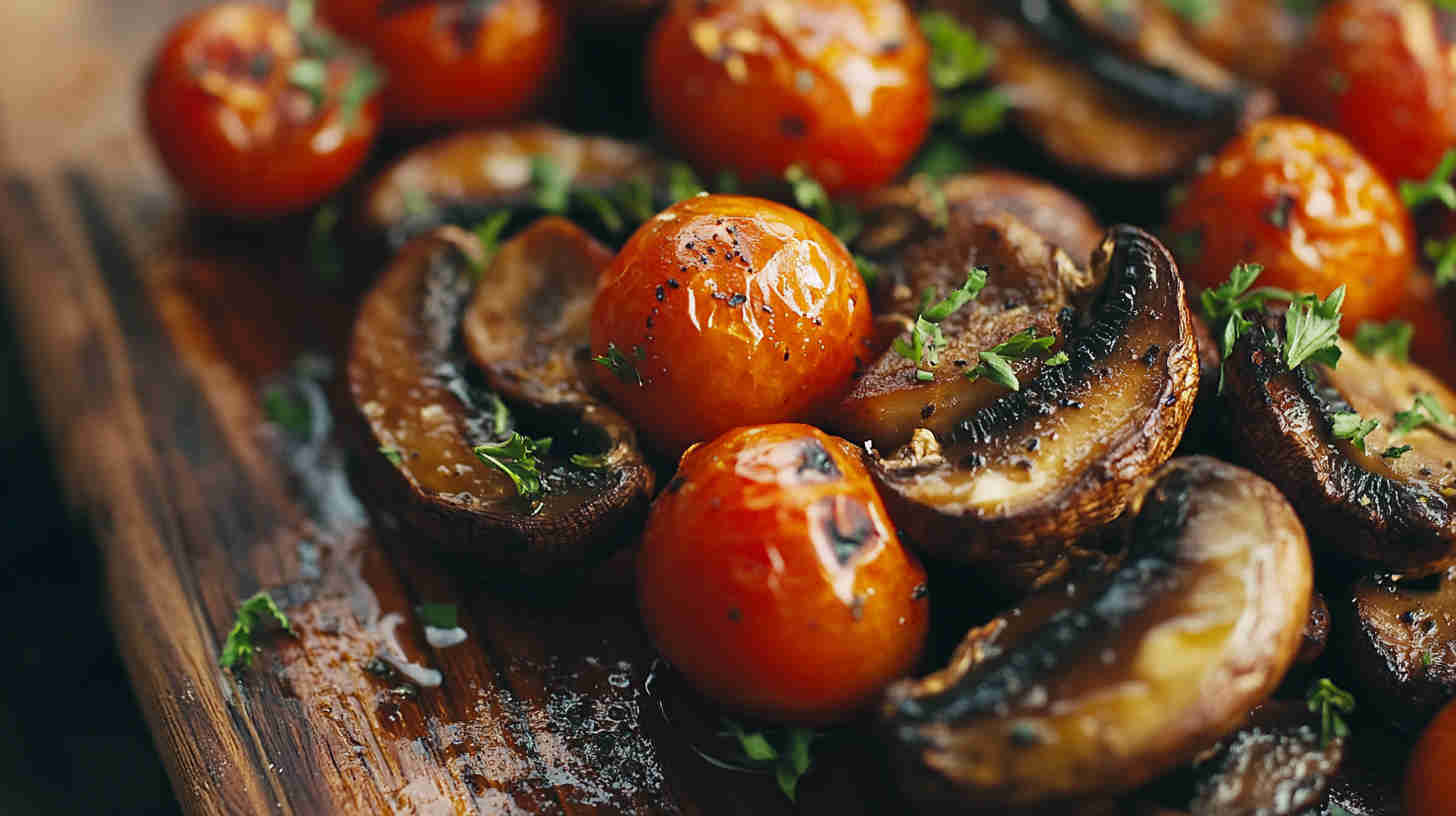 Juicy roasted cherry tomatoes and savory mushrooms with garlic—bursting with fresh flavor in minutes.