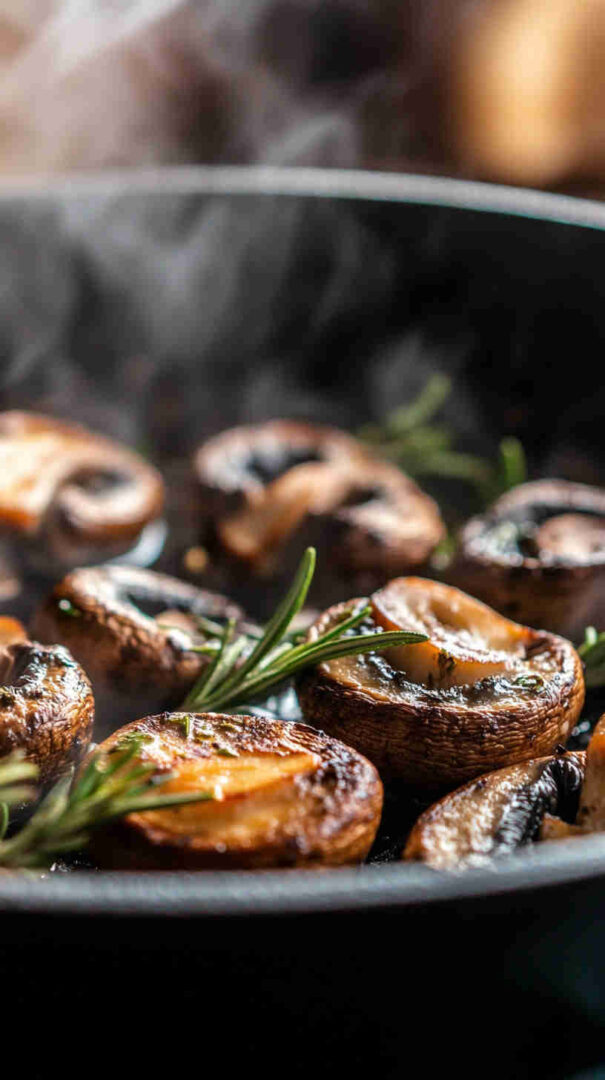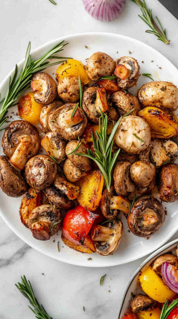 Fresh rosemary is the star herb here, providing a fragrant, pine-like aroma and Mediterranean flavor that pairs perfectly with mushrooms. Olive oil coats the mushrooms for golden caramelization and helps carry the seasonings.