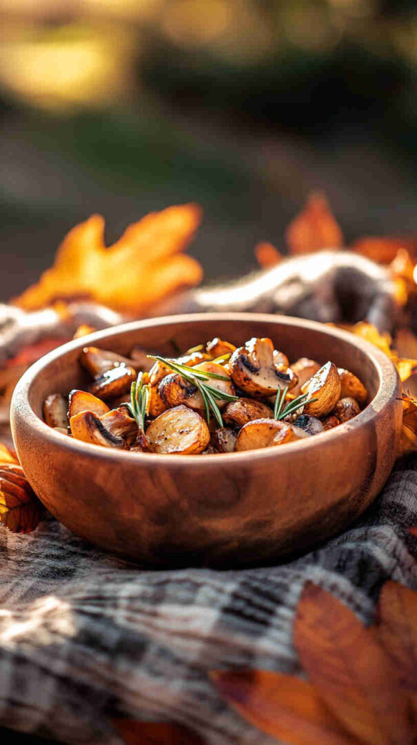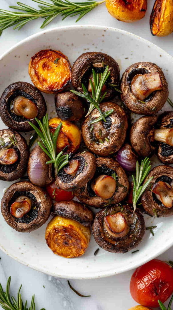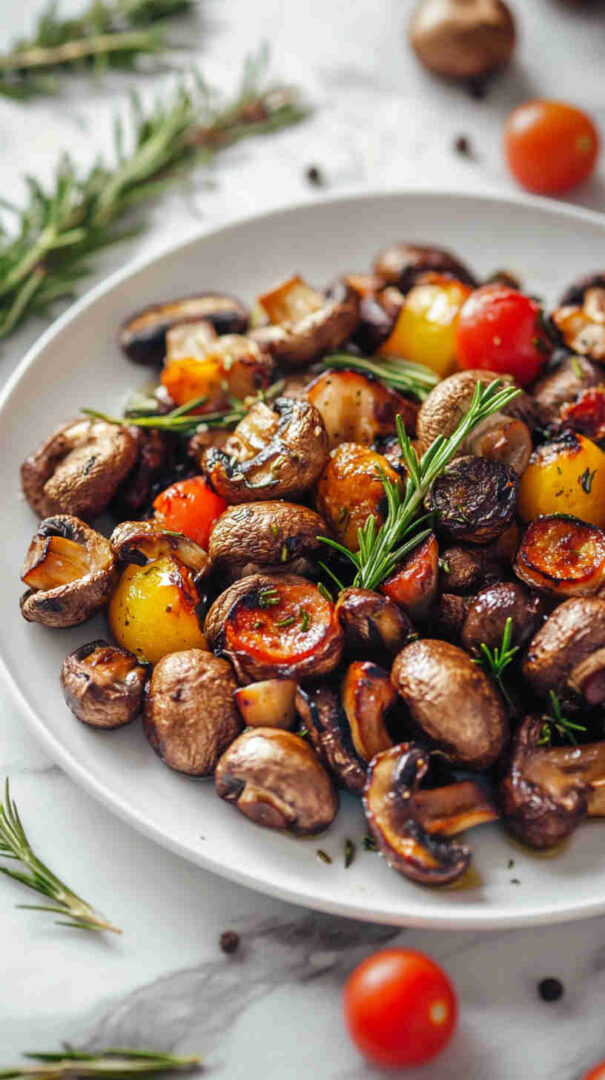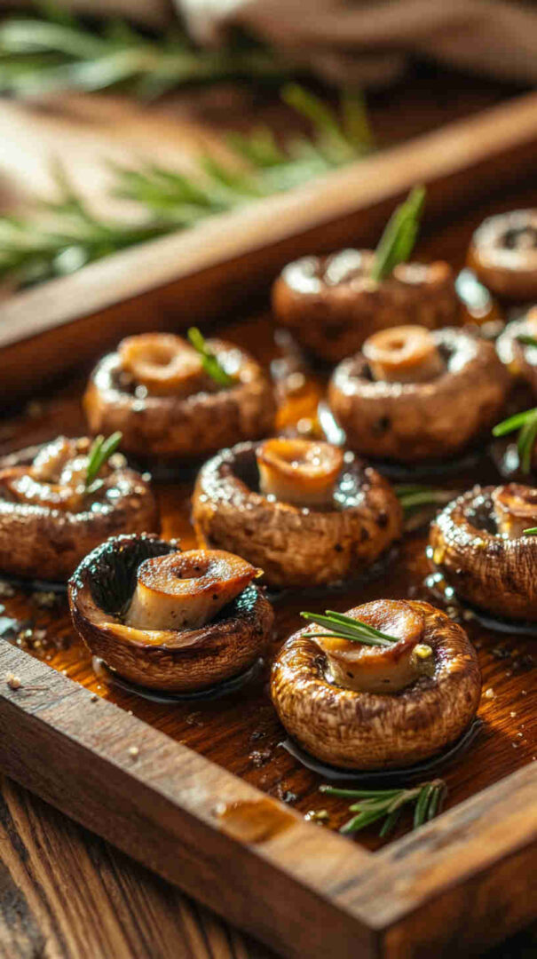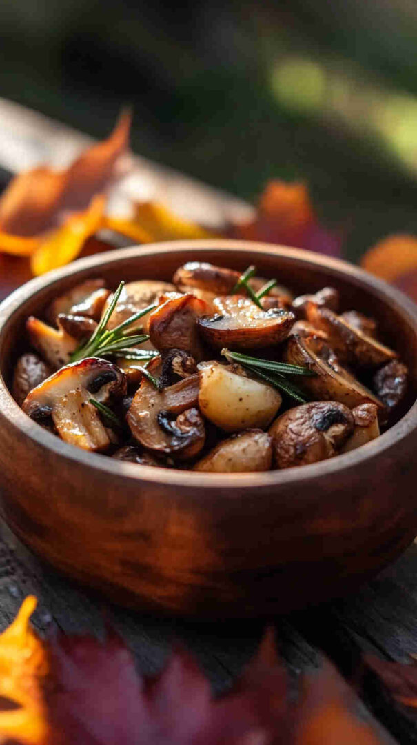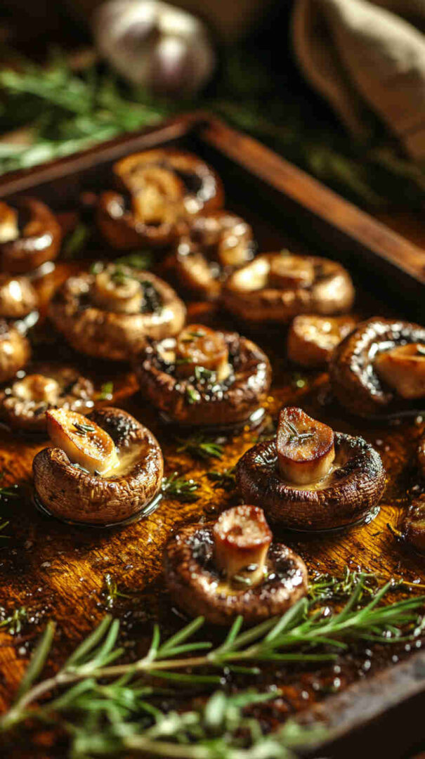 Aromatic rosemary roasted mushrooms with garlic—golden, crispy, and full of savory flavor.