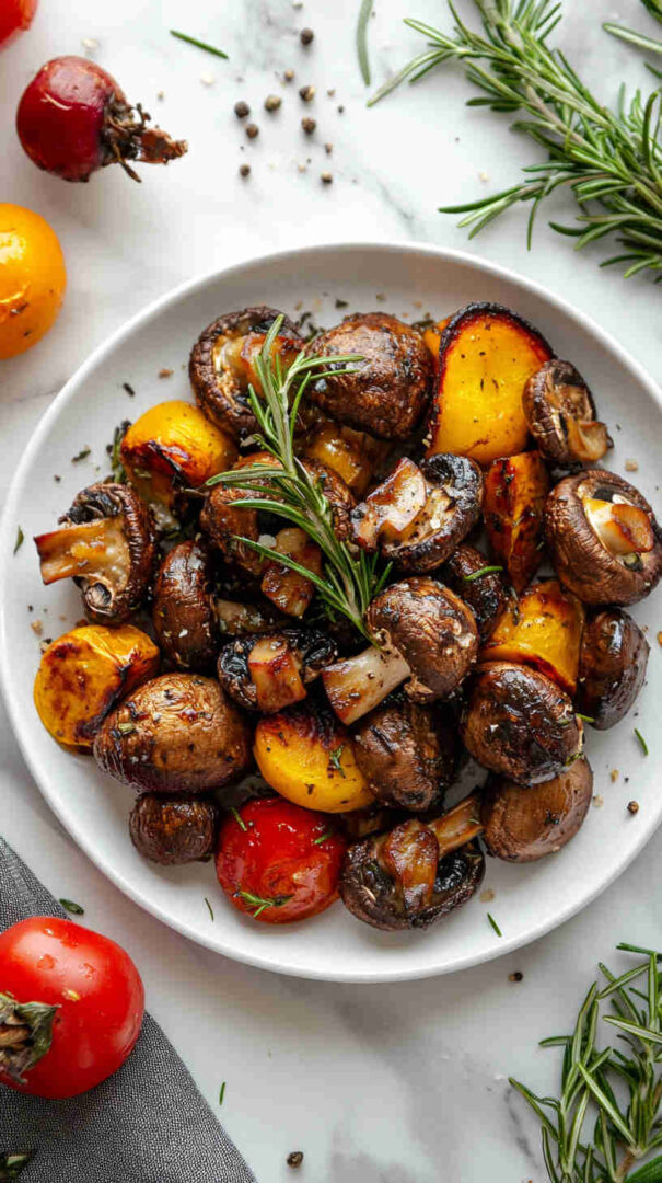 Fresh mushrooms form the hearty base, offering rich earthy umami and meaty texture that intensifies beautifully when roasted. A combination of cremini and button mushrooms works best, but any variety will shine.