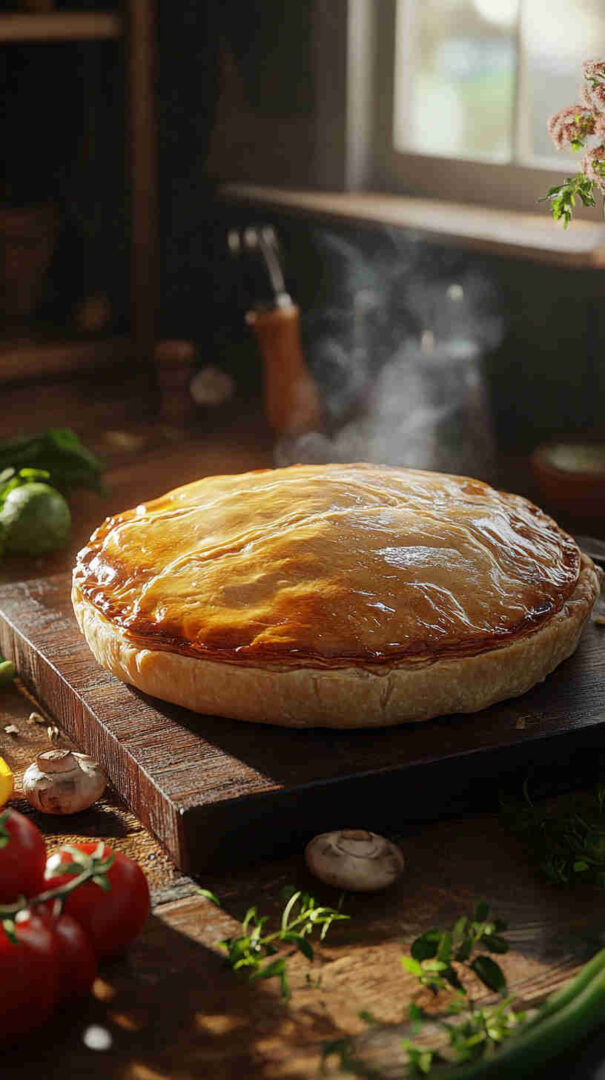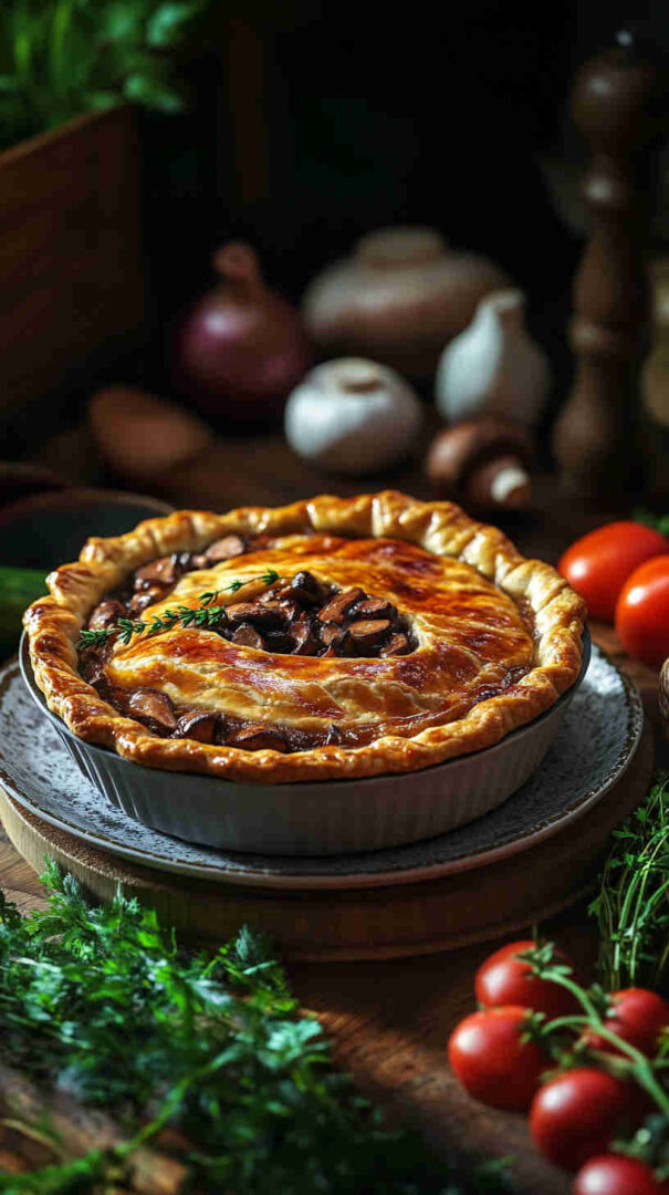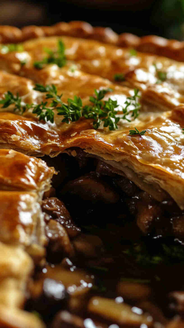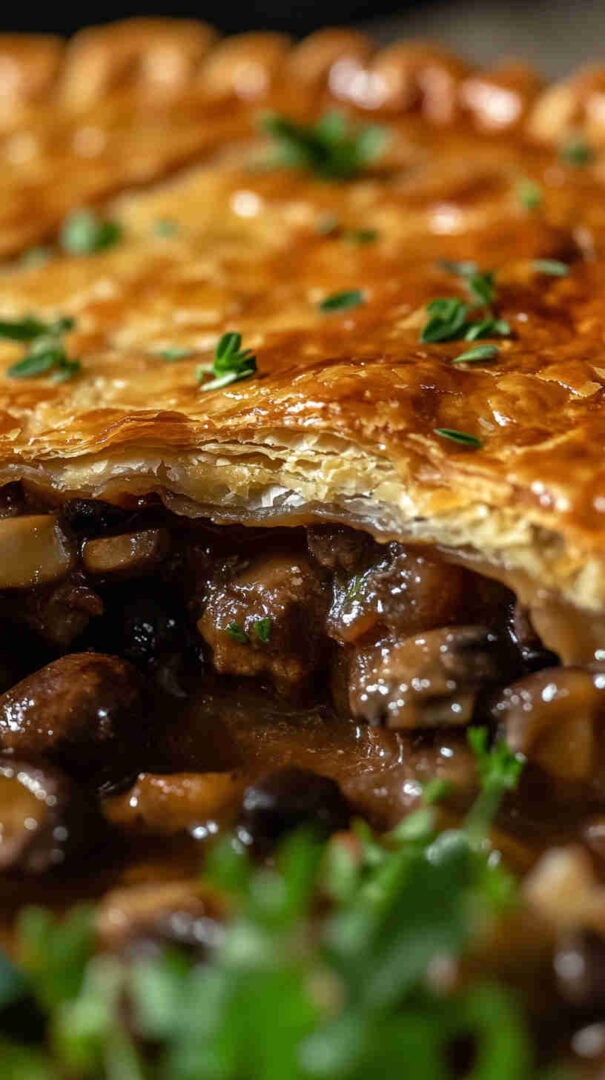 Tender beef and mushrooms in rich gravy, baked under golden flaky pastry – ultimate savory comfort pie.