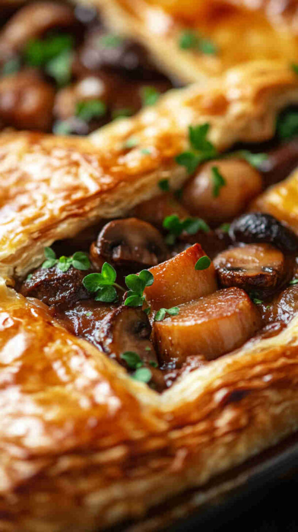 For vegetarian, substitute mushrooms with extra portobellos and use vegetable stock. Gluten-free? Use GF puff pastry and cornstarch thickener. For extra luxury, stir in a splash of cream at the end.