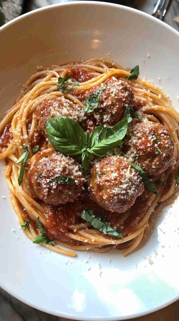 - Serve with love — Ladle meatballs and sauce over hot spaghetti, top with extra Parmesan and basil. Or enjoy with crusty bread, in subs, or as is—pure comfort in every bite!