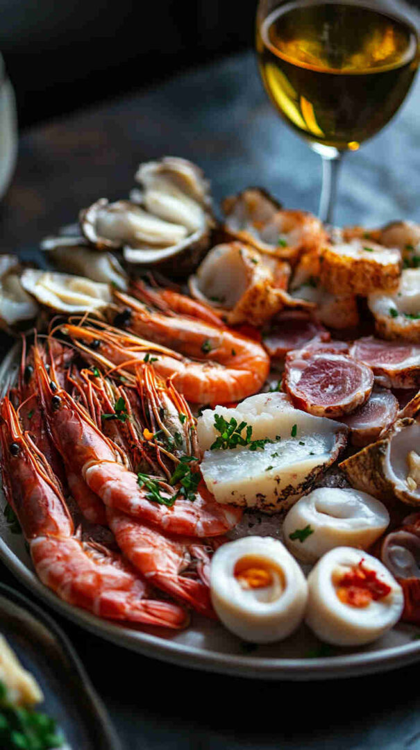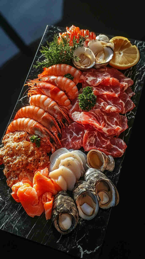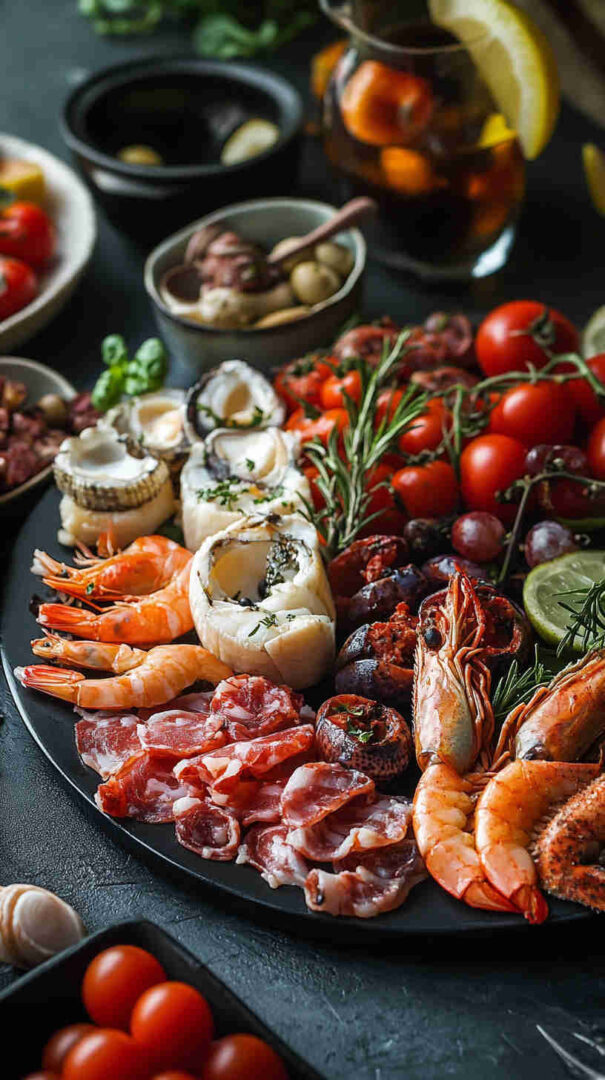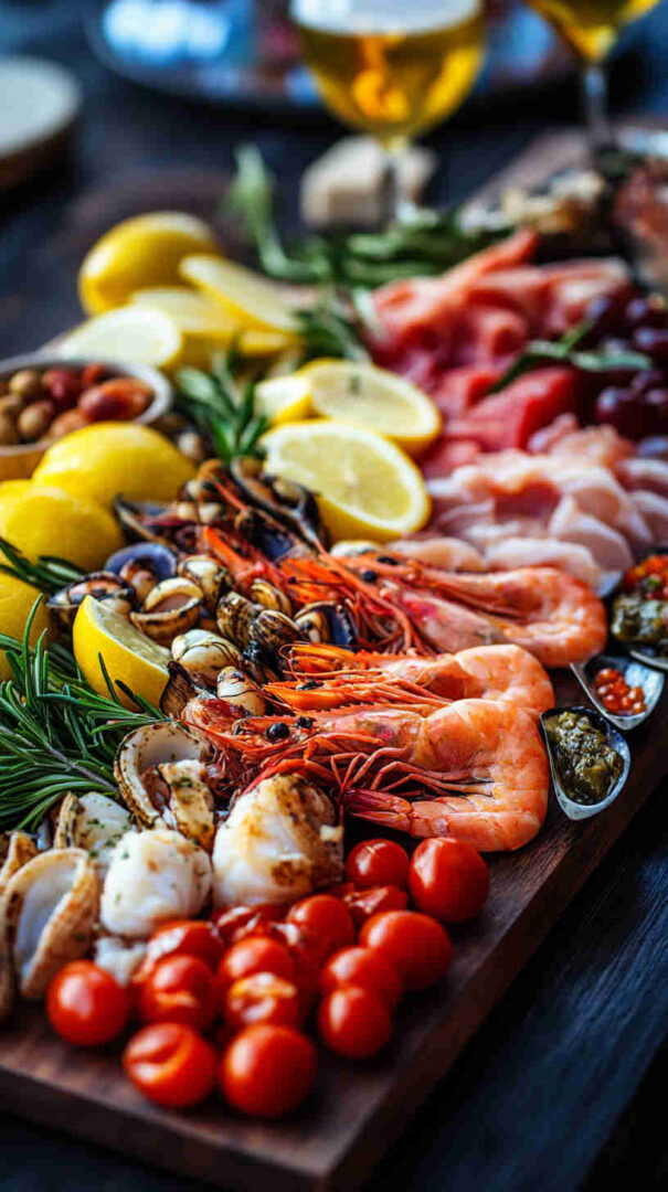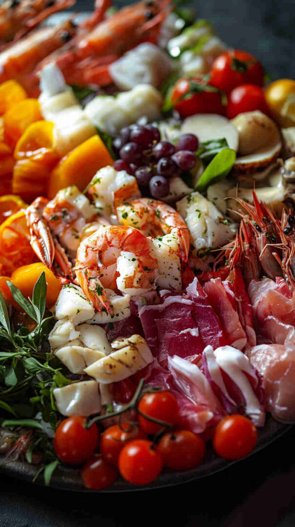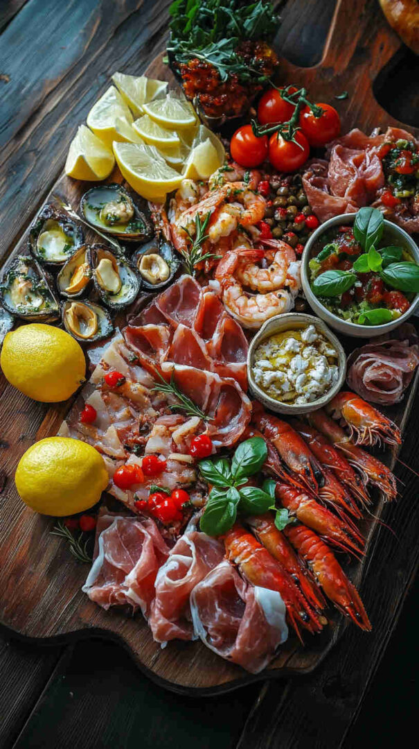 This Seafood Italian Antipasto Platter showcases tender poached shrimp, calamari, octopus, and mussels marinated in a bright lemon-garlic-olive oil dressing with fresh parsley, alongside briny olives, marinated artichokes, roasted peppers, and crusty bread. It’s a light, zesty, no-fuss coastal antipasto bursting with sea-to-table freshness and vibrant flavors.