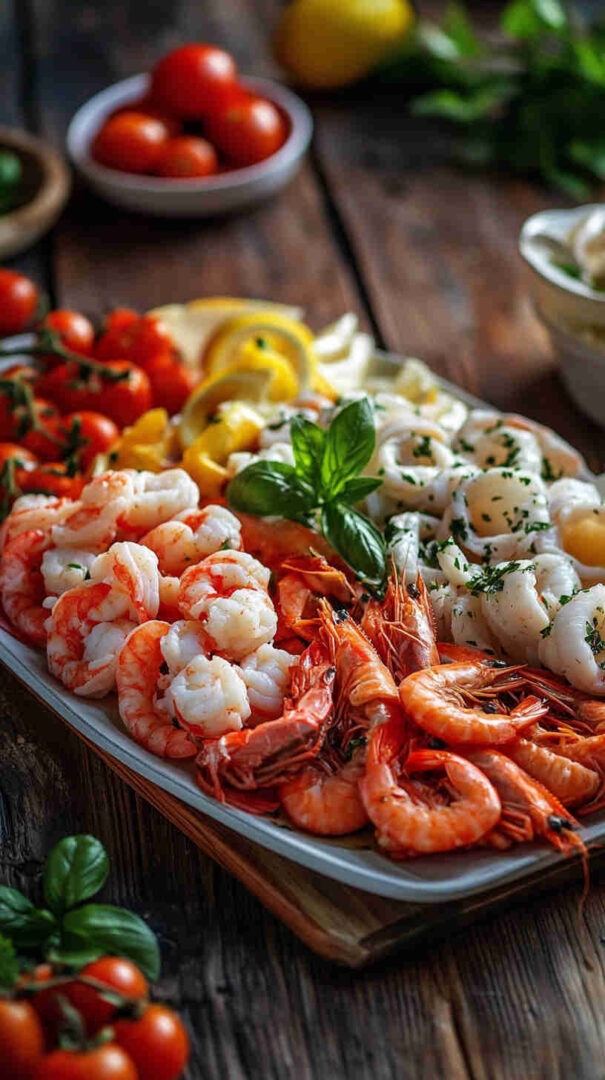 Add clams or scallops for more variety — steam clams separately. Include anchovies or sardines (oil-packed) for bold umami. For a simpler version, focus on shrimp and calamari only.