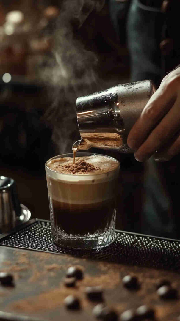 - Pour the frothy espresso — Strain or carefully pour the shaken mixture over the ice, watching the lovely foam settle on top.