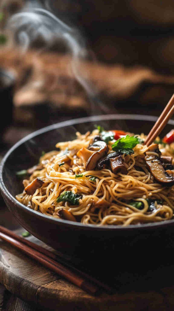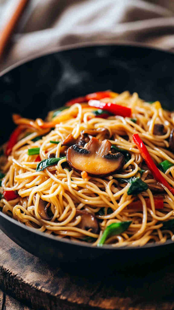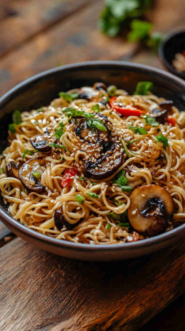 Quick stir-fried noodles with savory mushrooms in garlicky sesame-soy sauce—easy, umami-rich Asian comfort in minutes.