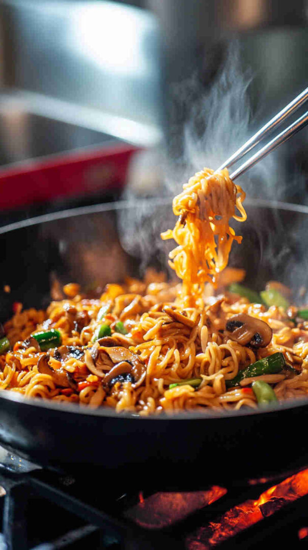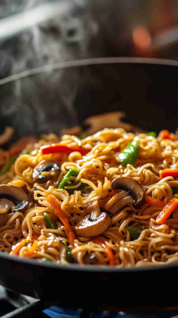 A touch of honey or brown sugar balances the saltiness and creates a glossy coating. Green onions bring fresh crunch and mild onion flavor; add them at the end to preserve color and bite. Neutral oil like vegetable or canola handles high-heat stir-frying without burning. Noodles (ramen, lo mein, udon, or rice noodles) should be cooked just al dente so they stay bouncy after tossing.