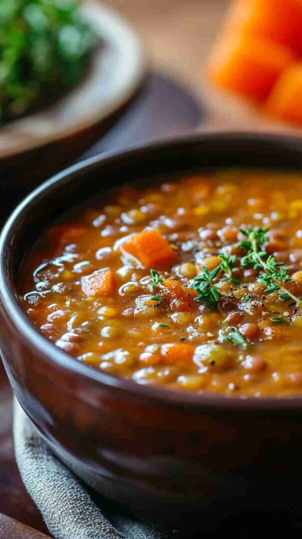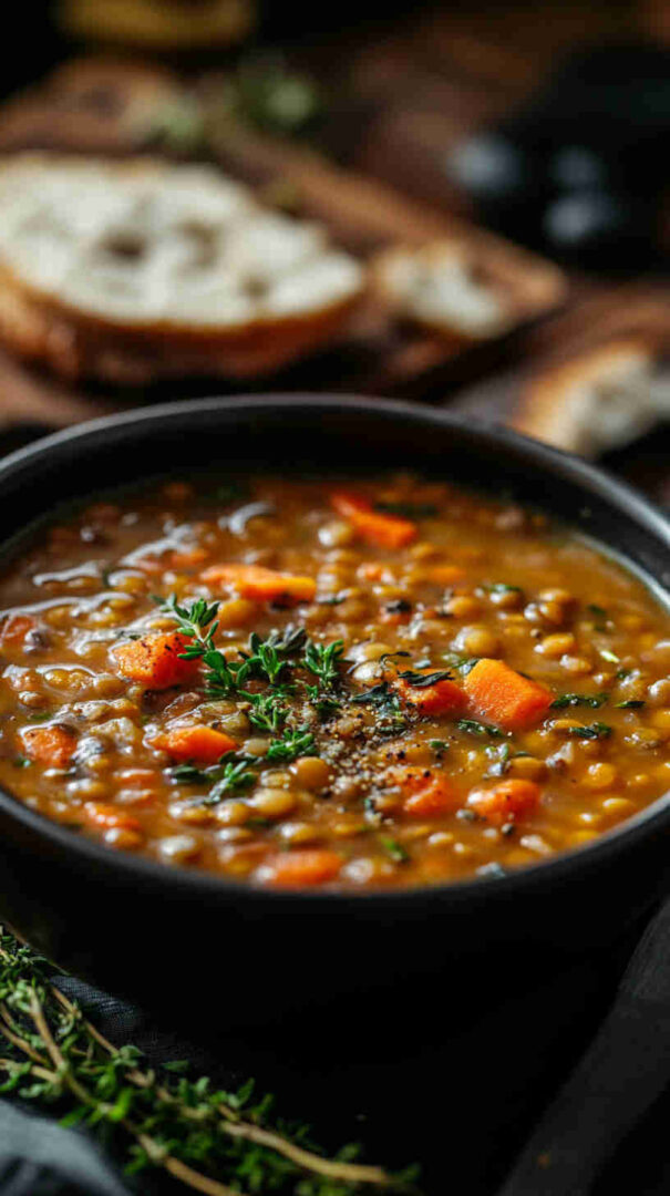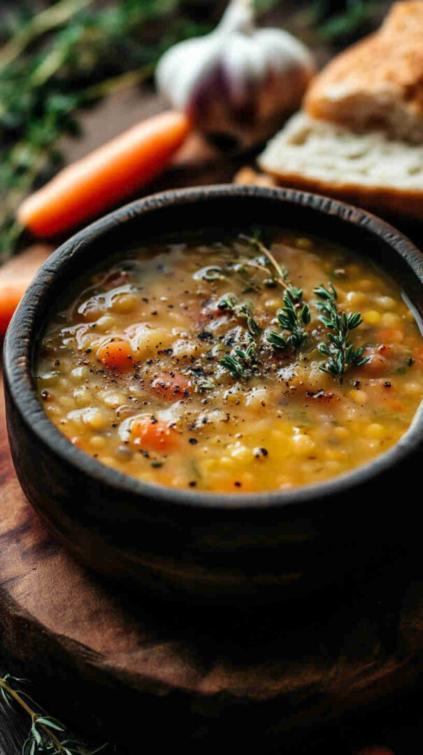 This Simple Lentil Soup with Garlic and Thyme is a cozy, nourishing one-pot meal featuring tender lentils simmered with aromatic garlic, fresh thyme, and hearty vegetables in a flavorful broth. Ready in about an hour, it offers comforting, rustic flavors with minimal effort—perfect for chilly evenings or wholesome meal prep.