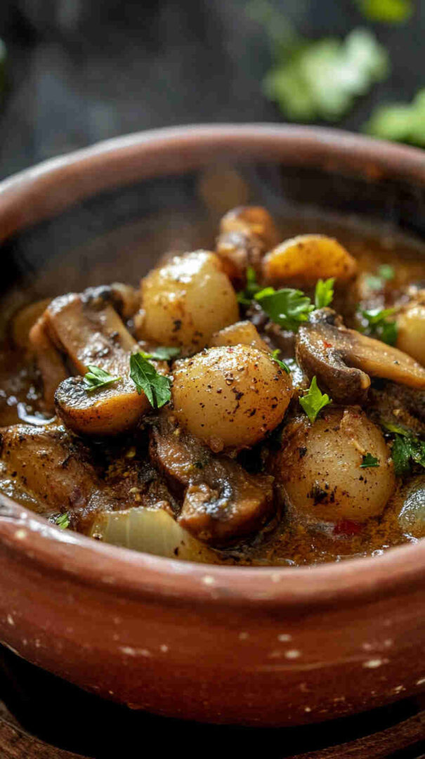This simple mushroom and onion curry is a quick, comforting Sri Lankan-style vegetarian dish featuring tender button mushrooms and sweet caramelised onions simmered in a light, aromatic coconut-spiced gravy. Budget-friendly, full of earthy umami flavour, and ready in under 30 minutes – perfect with rice, roti, or bread for an easy everyday meal.