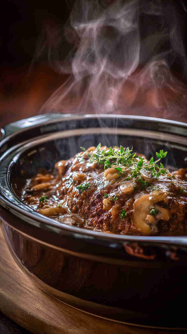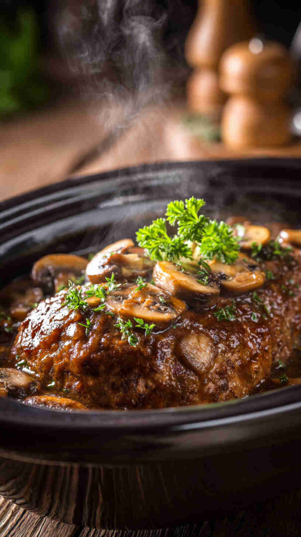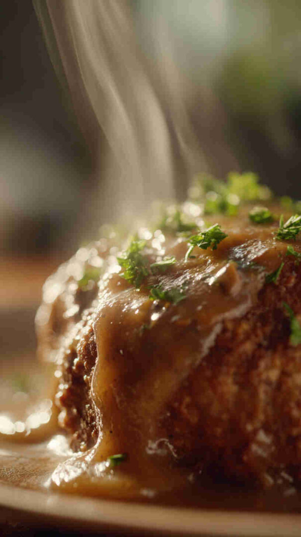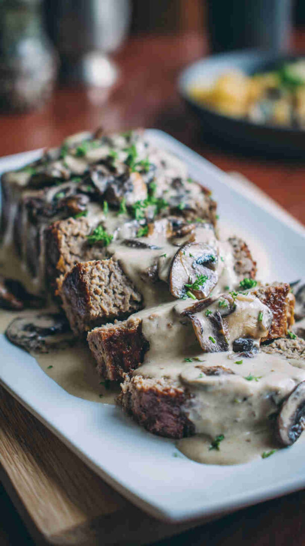 - Slice, smother, and serve — Cut thick slices, generously spoon that luscious mushroom gravy over top, and garnish with fresh parsley. Pair with mashed potatoes, green beans, or crusty bread—dinner is served, and everyone will be asking for seconds!