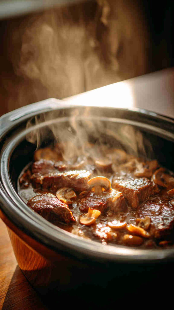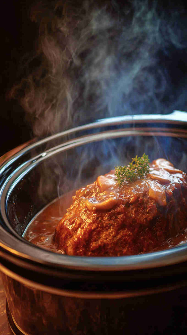 This tender slow cooker meatloaf blends ground beef with sautéed mushrooms, onions, and herbs for deep umami flavor. It cooks low and slow for melt-in-your-mouth texture, then gets smothered in a creamy homemade mushroom gravy made from the drippings and fresh mushrooms—pure comfort food bliss with minimal effort.