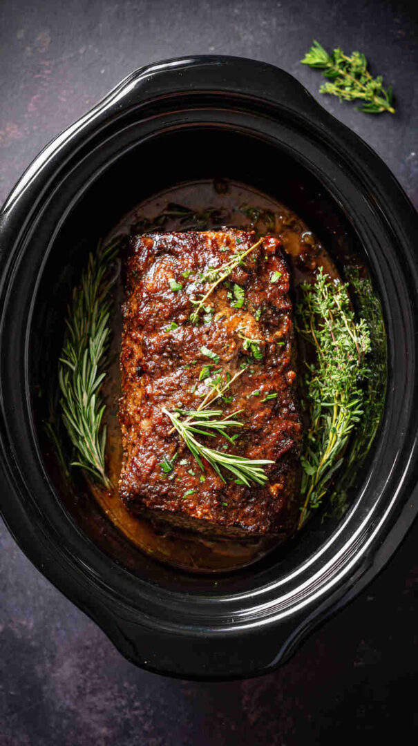 - Slow cooker setup — Line your slow cooker with foil strips (for easy lifting later). Place the meatloaf in the center. Cover and cook on LOW for 6-7 hours or HIGH for 3-4 hours, until internal temp hits 160°F.