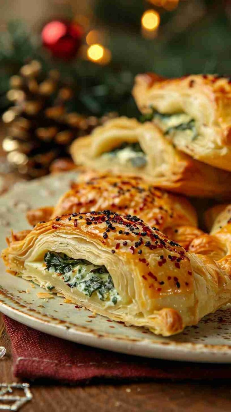 Crispy puff pastry filled with creamy spinach and cheese—elegant party favorite!