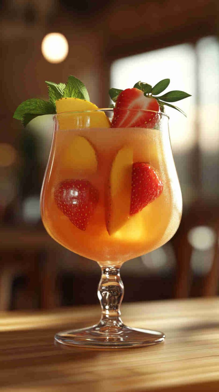 - Serve with Flair: Pour over ice, garnish with strawberry slices, mango chunks, and mint sprigs, and enjoy this tropical drink!