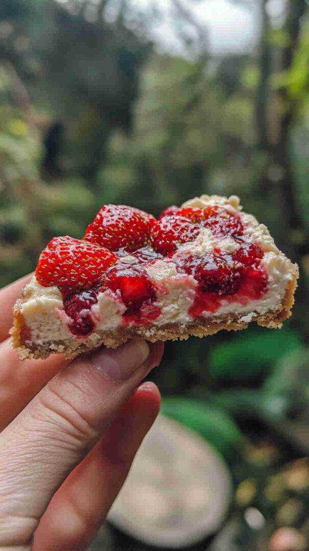 - Slice with a hot knife, serve with extra fresh berries or a mint sprig, and watch everyone’s faces light up at this healthy-yet-indulgent treat!