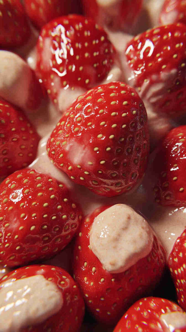 - For extra beauty, slice a few fresh strawberries and arrange them on top, or swirl in extra strawberry puree with a toothpick for an artistic touch.