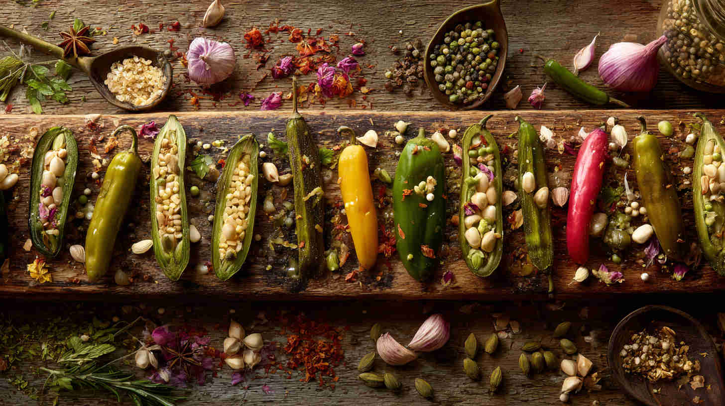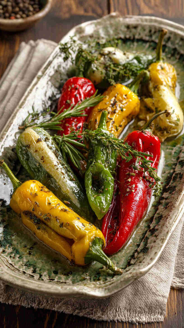 For extra shine and flavor, drizzle with high-quality extra virgin olive oil after stuffing and let marinate at least 24 hours in the fridge. Serve at room temperature for maximum taste—cold straight from the fridge dulls the flavors. If using fresh peppers, pickle them first in vinegar brine for safety and tang.