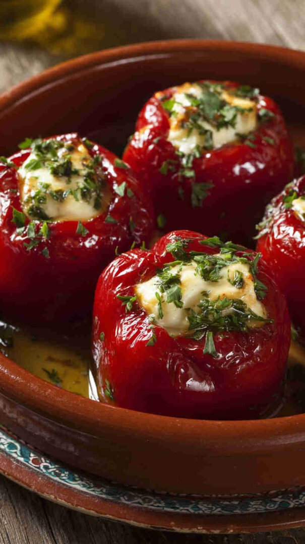Store stuffed peppers in a clean glass jar, completely covered with extra virgin olive oil, in the refrigerator for up to 2 weeks—the flavors deepen beautifully over time. Keep submerged in oil to prevent spoilage.