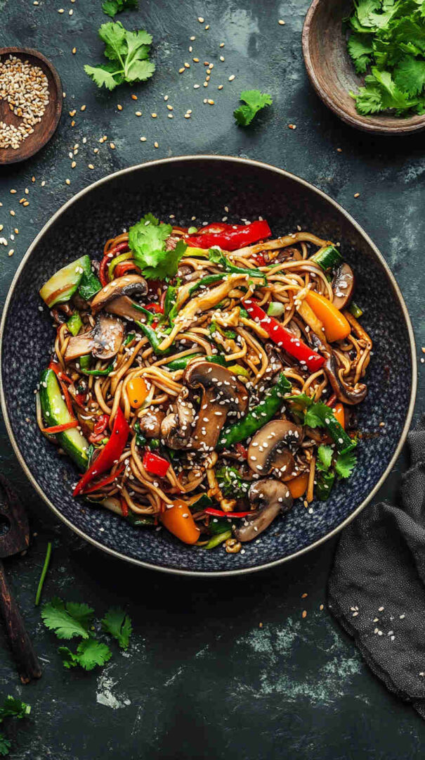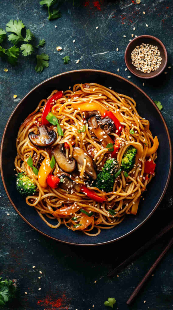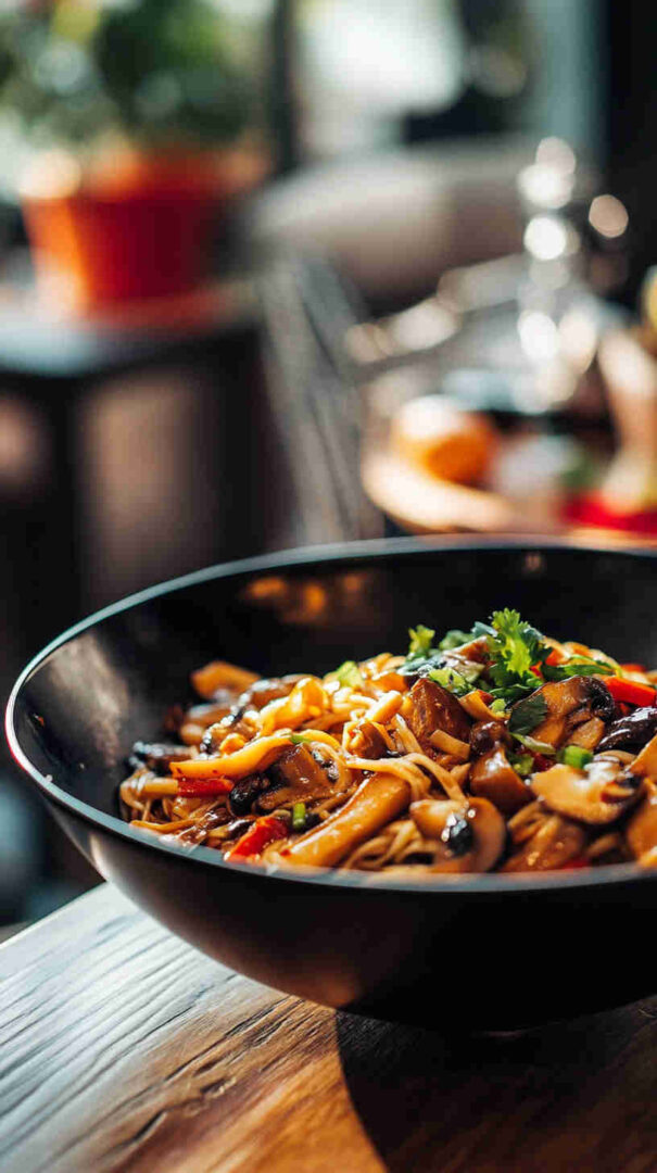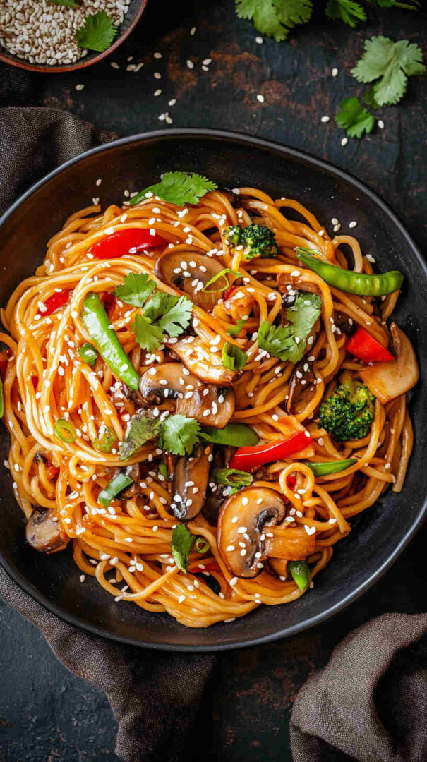 This vibrant Sweet and Spicy Asian Mushroom Noodles recipe features meaty mushrooms stir-fried until golden and caramelized, then tossed with chewy noodles in a glossy sauce blending soy, honey (or brown sugar), garlic, ginger, and chili for the perfect balance of sweet, spicy, and deeply savory Asian flavors. Quick, satisfying, and totally addictive!