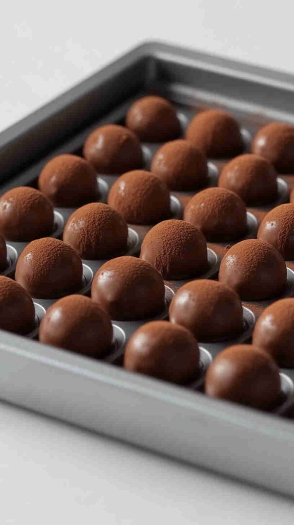 Roll in unsweetened cocoa powder for classic truffles, chopped nuts (almonds, hazelnuts, pecans), shredded coconut, or cacao nibs for crunch. Dip in melted dark chocolate for an extra-decadent shell.