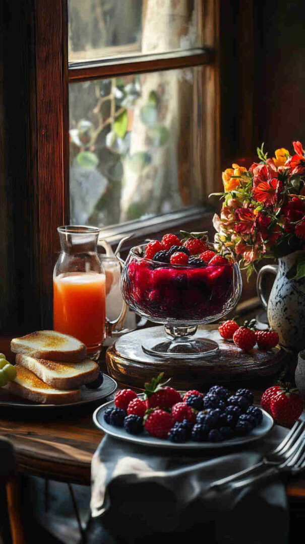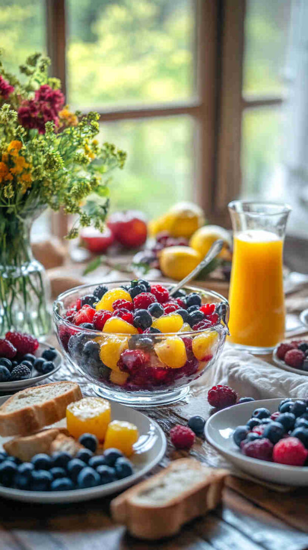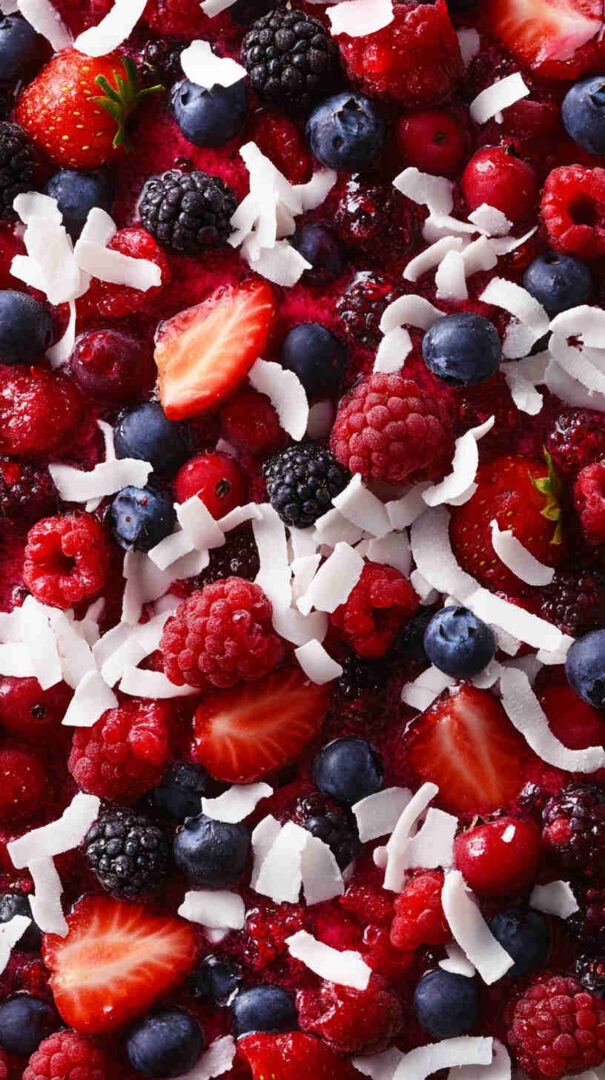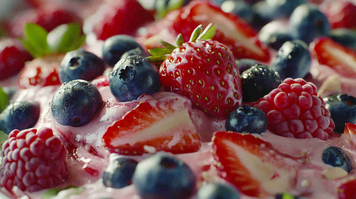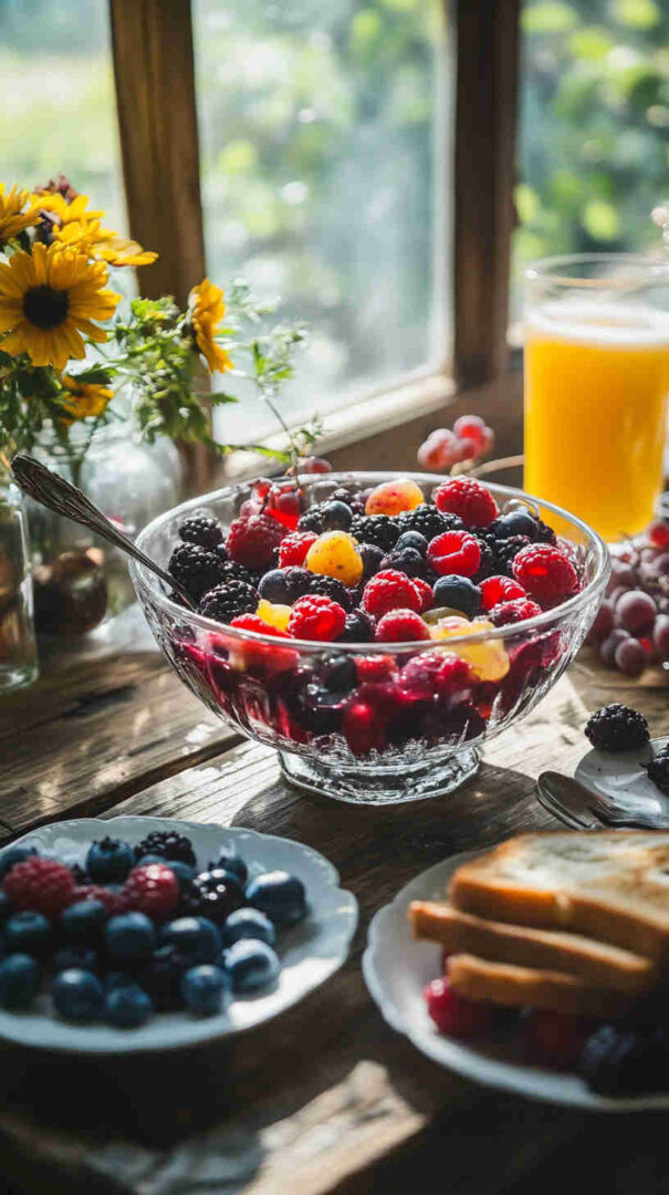 Fresh mixed berries form the star here—choose ripe but firm strawberries (hulled and halved or quartered), plump blueberries, sweet raspberries, and juicy blackberries for the best texture and flavor explosion.