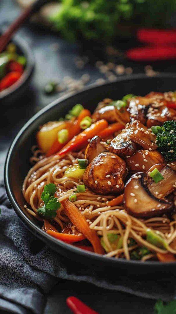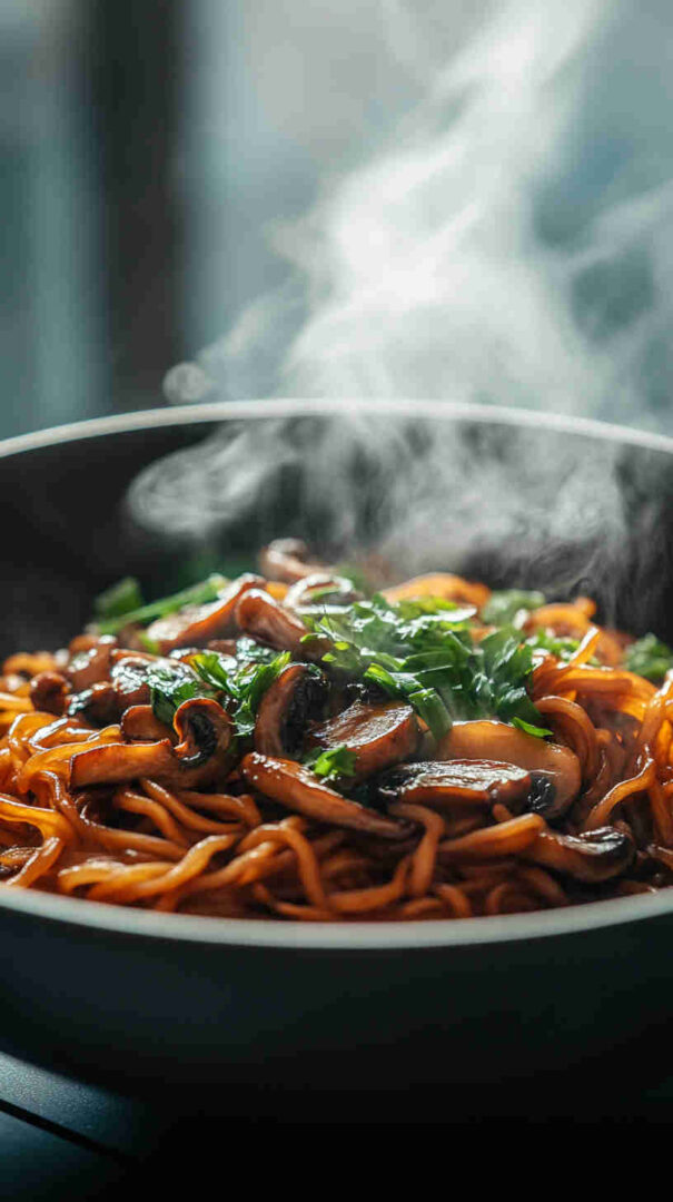 This quick Asian-inspired Teriyaki Mushroom Noodles recipe features tender stir-fried mushrooms coated in a rich, glossy homemade teriyaki sauce, tossed with chewy noodles and vibrant veggies. It’s a flavorful, satisfying vegetarian meal that brings bold Japanese flavors to your table in under 30 minutes — perfect for busy weeknights.