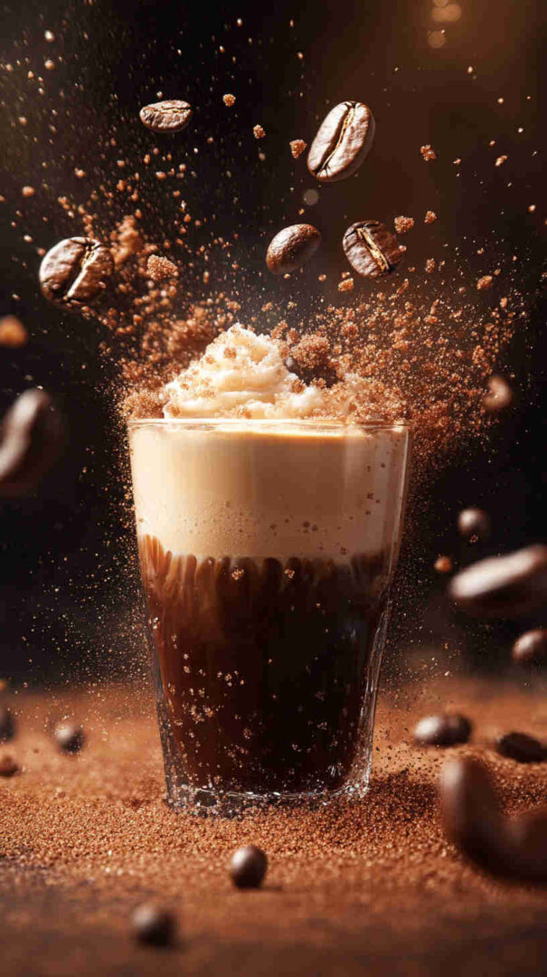 Espresso forms the strong foundation; aim for two fresh double shots (about 2–3 oz total) using a medium or blonde roast for the best balance. The hot espresso helps melt the sugar instantly for a smooth base.