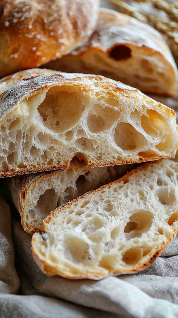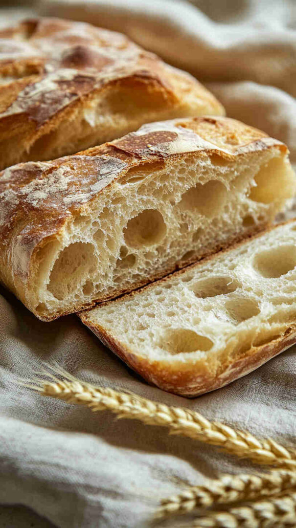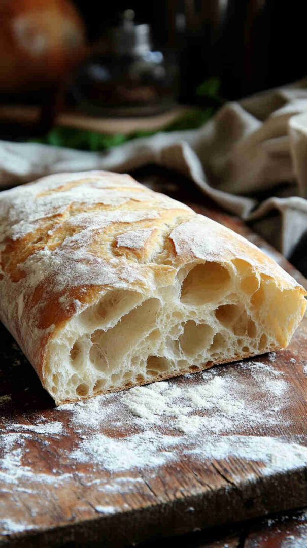 Ciabatta is best enjoyed fresh on the day it’s baked, when the crust is crispest. Store at room temperature in a paper bag or loosely wrapped in a clean kitchen towel for 1-2 days to maintain crust (avoid plastic bags, as they soften it).