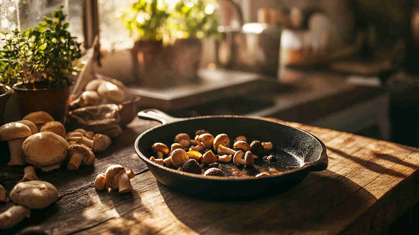 - Reunite mushrooms and broth. Return browned mushrooms to skillet, pour in broth, stir well. Simmer gently 5–8 minutes until sauce thickens slightly and mushrooms are tender.