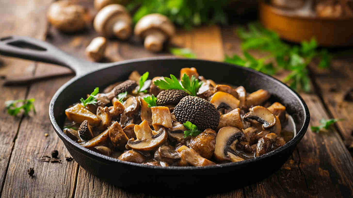 Brown mushrooms in batches over high heat so they caramelize instead of steam—pat dry first for best sear. Drizzle truffle oil after removing from heat—heat destroys its delicate aroma, so always add as a finishing touch.